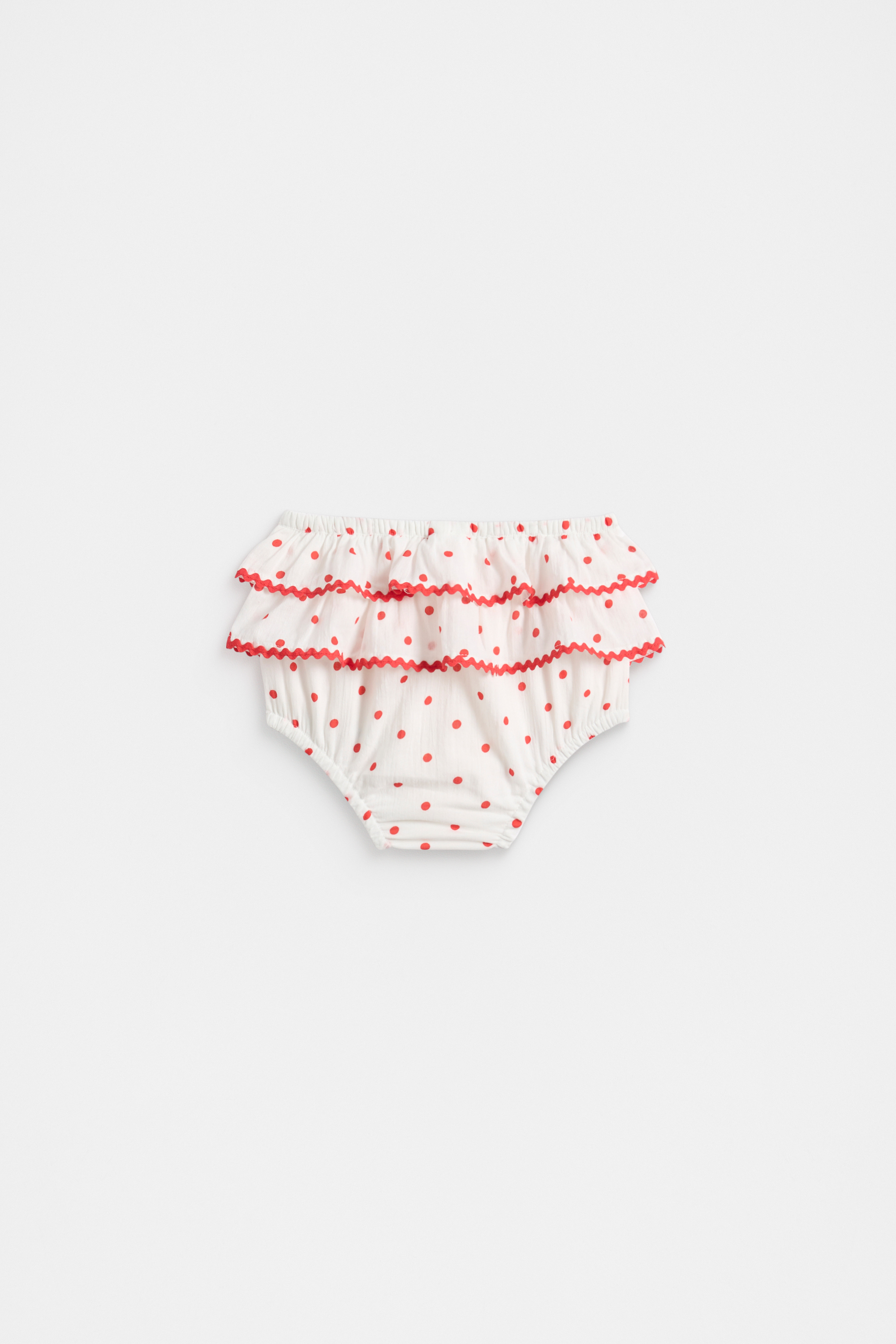 These bloomers are the perfect addition to her little summer wardrobe. They feature an elasticated waistband and elasticated leg openings for a comfortable fit. Pair with the matching polka dot top for a cute coordinated look or for the perfect gift.