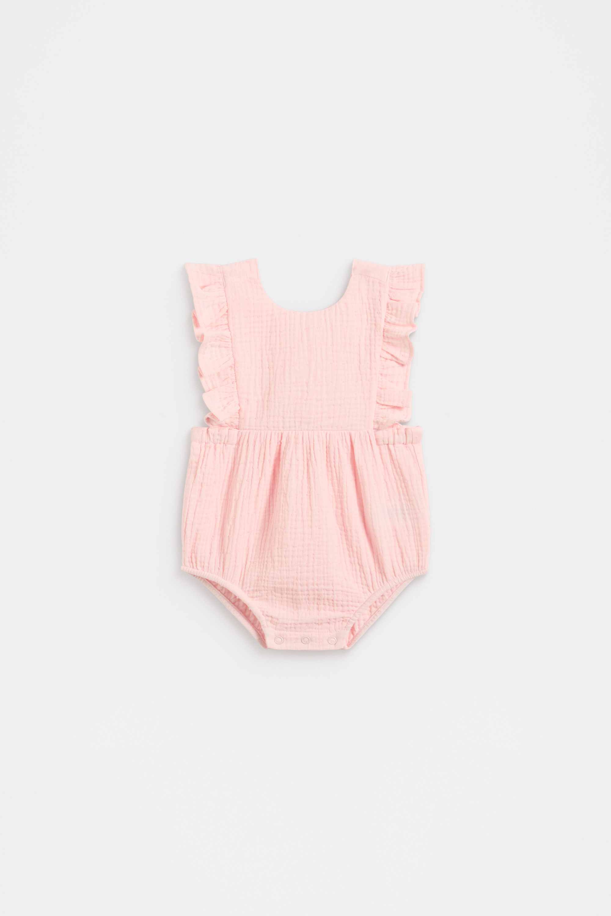 Sweetened with frills and spots, this romper is set to be a new favourite in her little wardrobe. Crafted in a cotton rich blend, it's a sleeveless design and features a round neck, crossover straps, an elasticated waistband, elasticated leg openings and gusset snaps for easy changes.