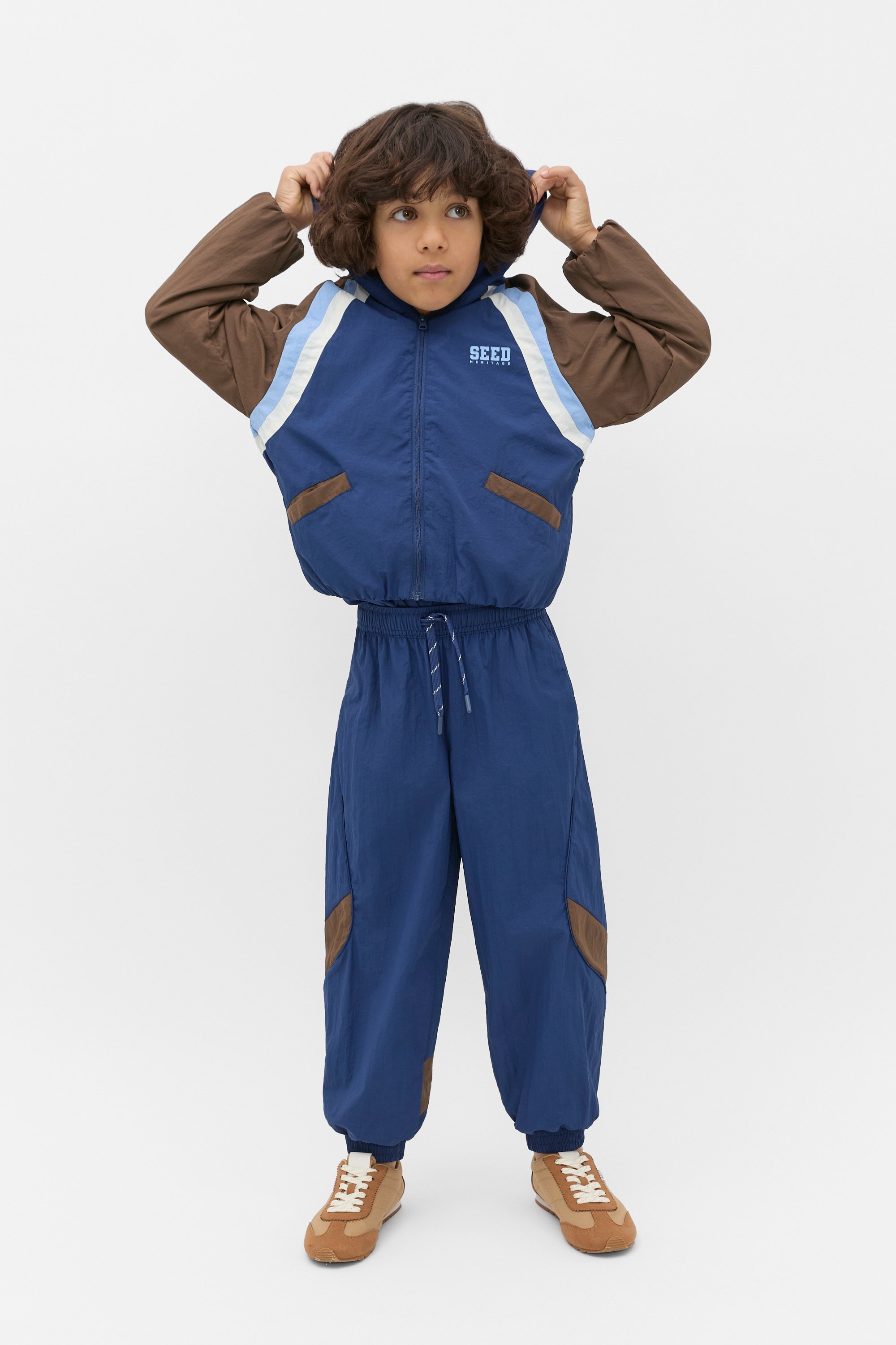A trending style with a retro feel, these sporty pants are made for days at play. Crafted in nylon, they feature an elasticated waistband with a drawstring, pockets and elasticated cuffs at the ankle. Style with the matching spray jacket for the cutest head-to-toe set.