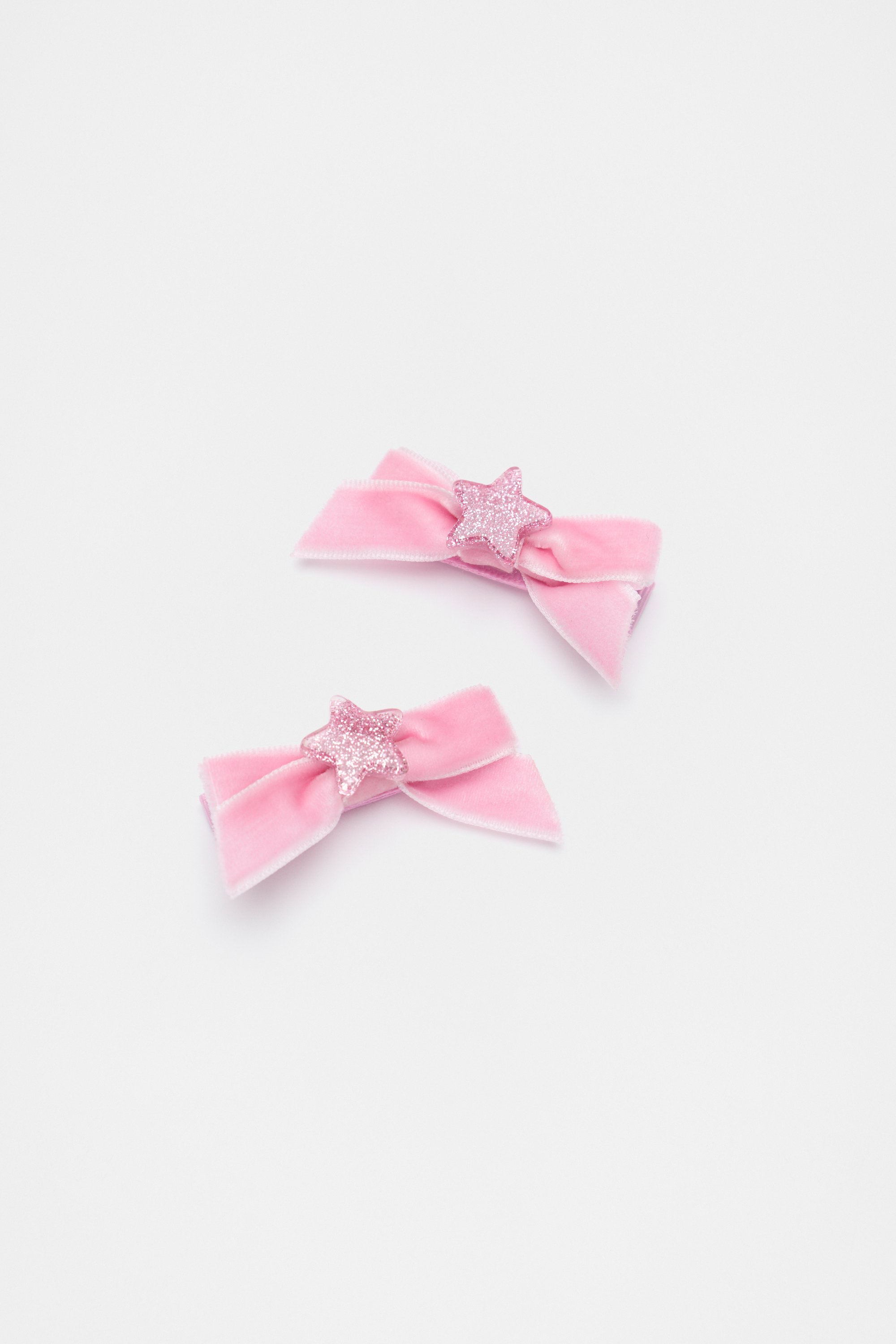 Sparkly and sweet, these clips feature velvet bows with glittery resin stars at their centre. This product is not a toy and is not suitable for children three years and under.