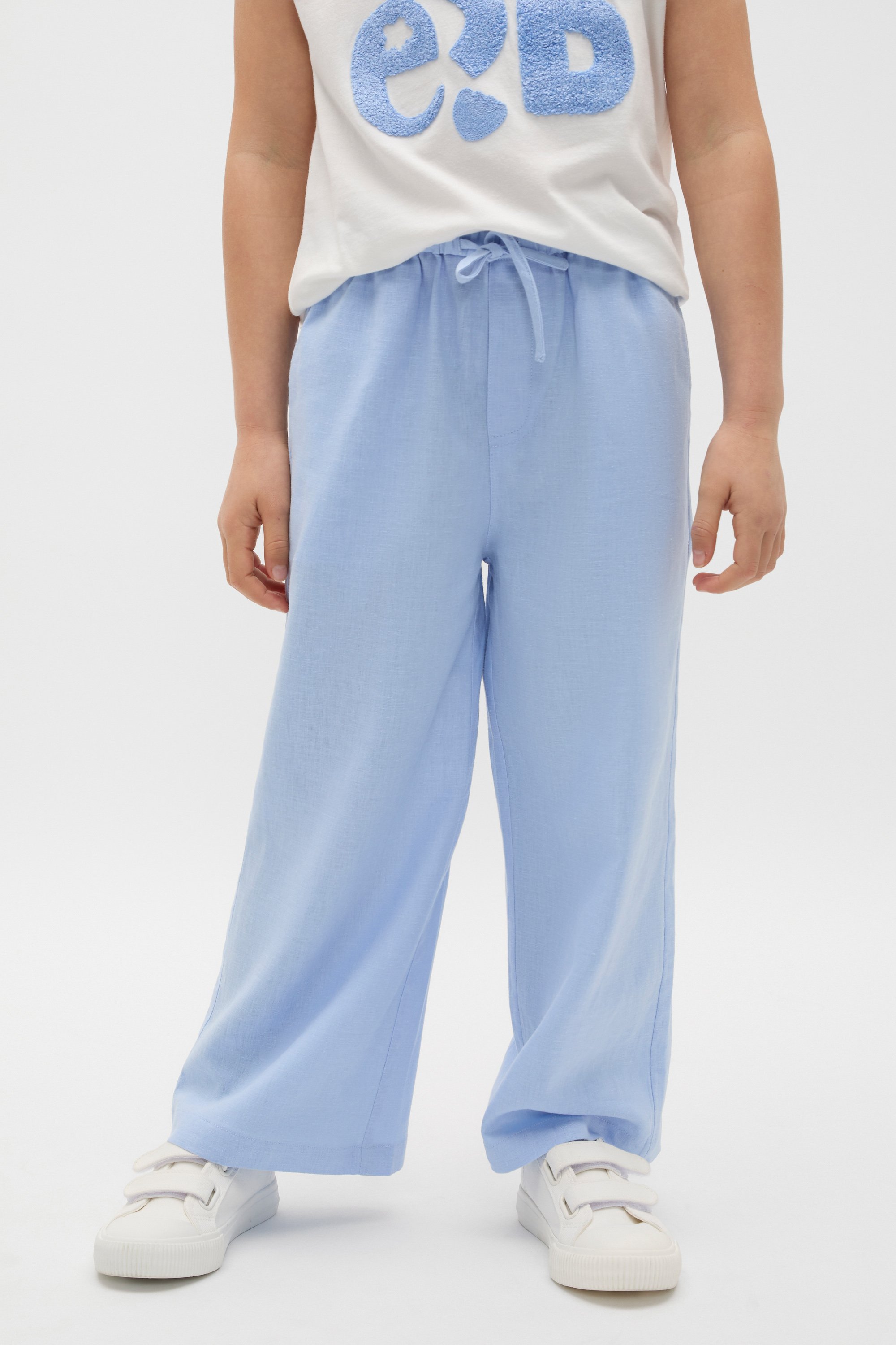 Versatile and cool, these pants are handy for her weekend uniform. Crafted in a soft blend containing linen, they feature an elasticated waistband with a drawstring, pockets and a straight leg shape.