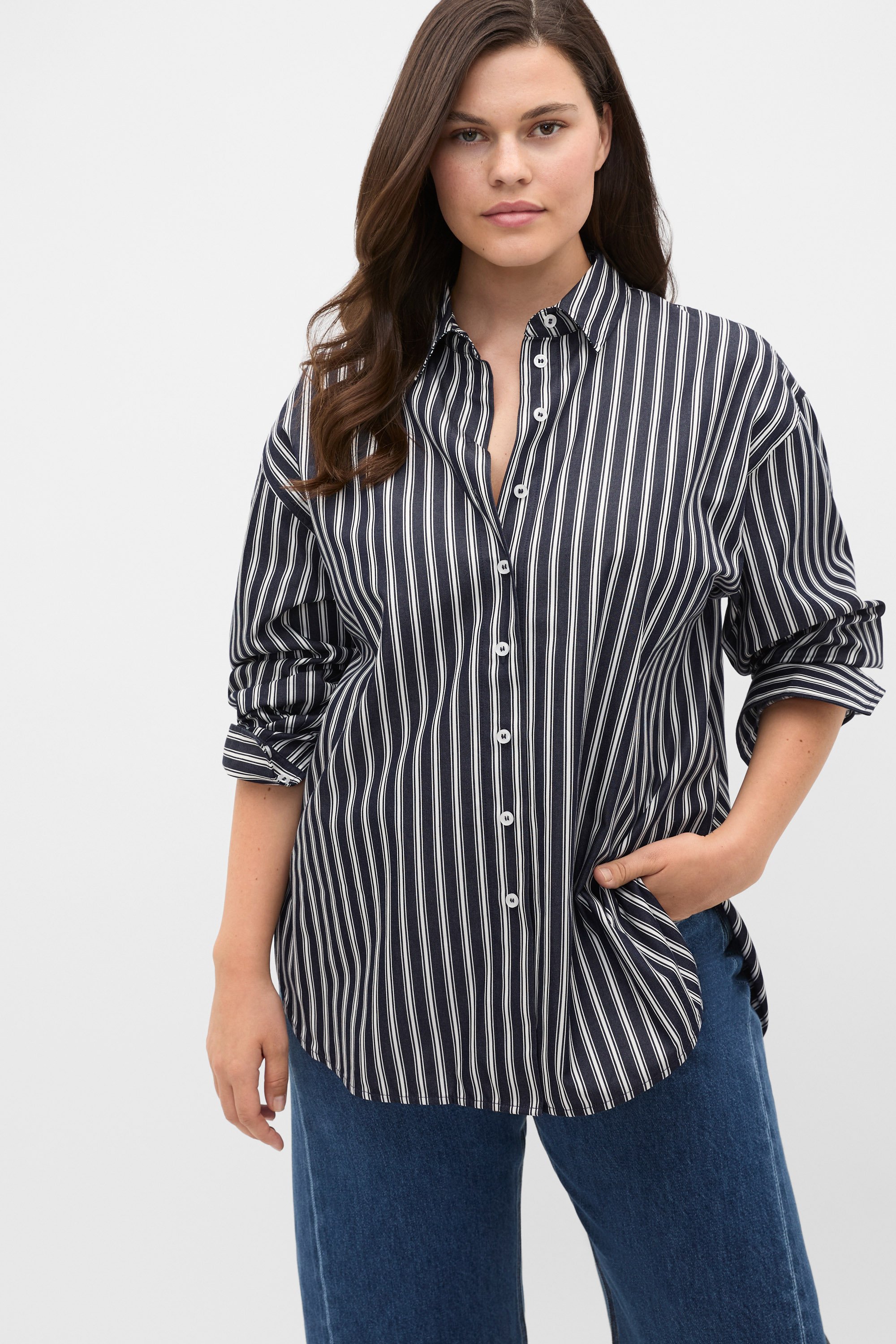 This shirt is a contemporary essential in your wardrobe. Crafted in premium cotton, it has an oversized fit and features a collar, long sleeves with button cuffs, a button-through front and a timeless stripe design.