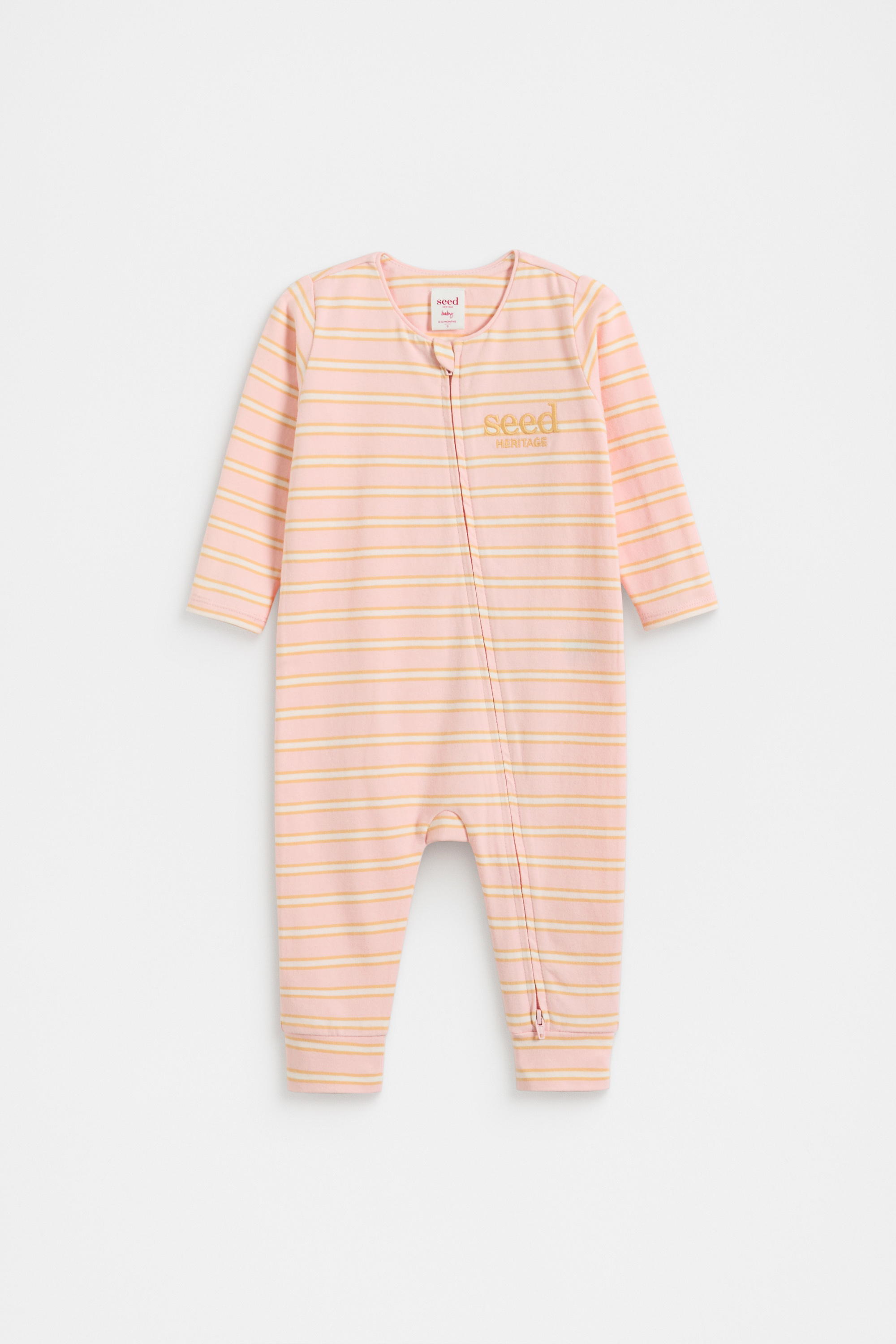 Super soft and stretchy, this bodysuit is a cosy design, perfect for layering. Crafted in a premium stretch cotton blend, it features a round neck, a sweet stripe design, long sleeves and secures with a zip that runs from the neck to the ankle. Pair with the matching stripe styles for the cutest coordination, or for the perfect gift.