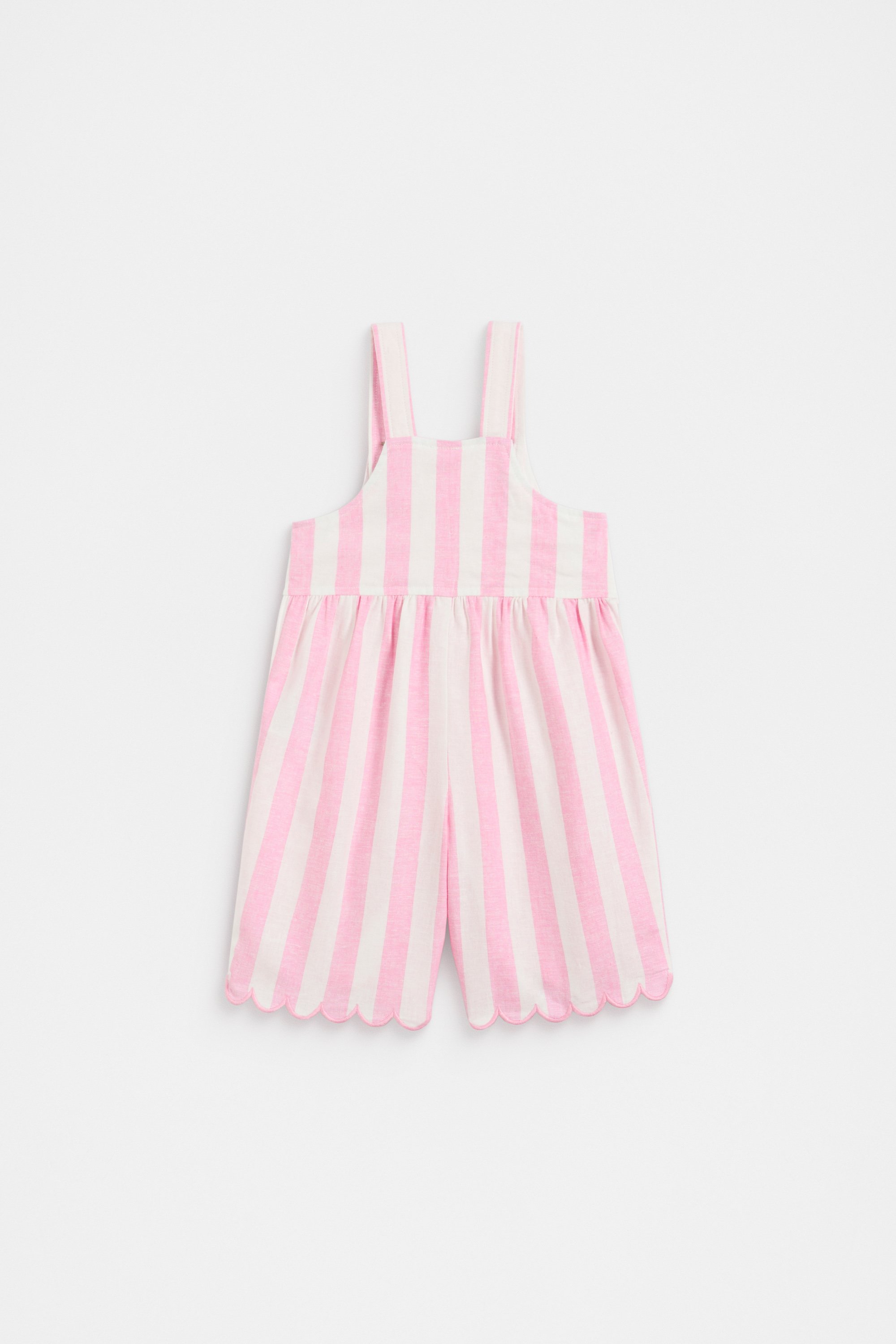 Stripe Scallop Overall  Candy Pink  hi-res Stripe Scallop Overall  Candy Pink  hi-res