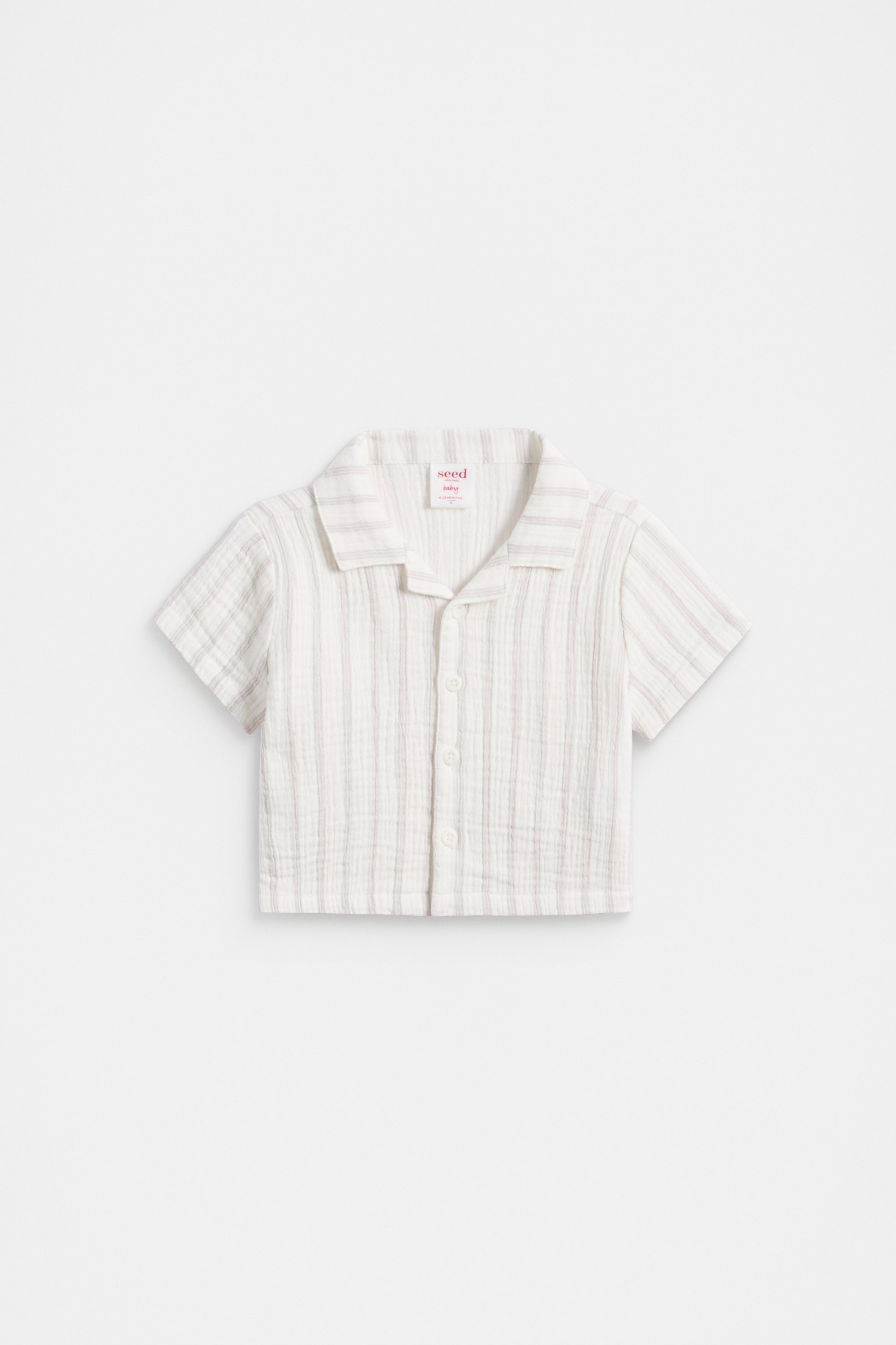 An instant classic for his little wardrobe, this button-up is a smartly tailored option. Crafted in a lightweight premium cotton, it features a notched collar, short sleeves and a stripe design.