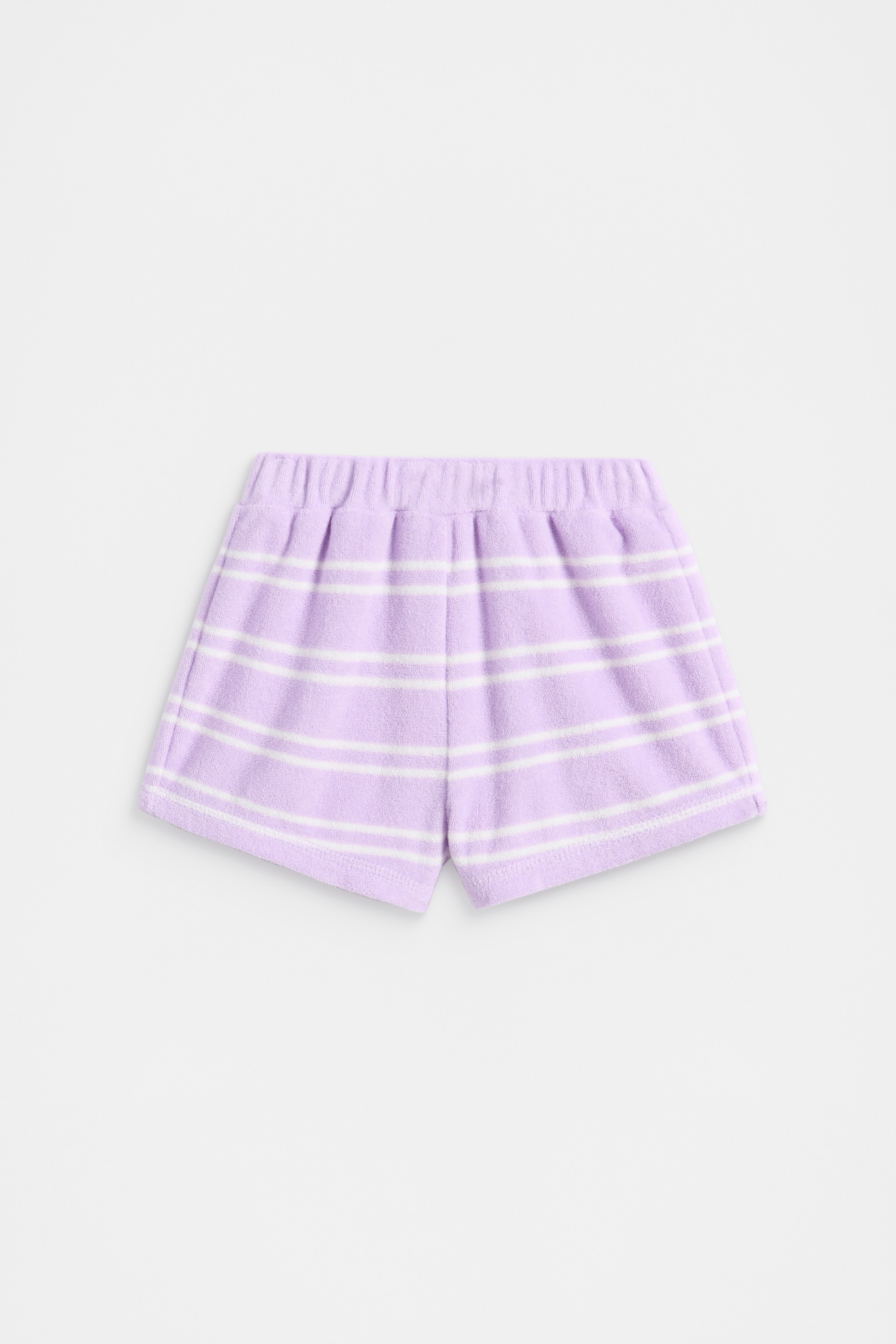 The perfect pair for summer, these shorts are a handy addition to her little wardrobe. With a terry towelling finish, they feature an elasticated waistband, stripe design, a relaxed fit and a back pocket with an embroidered patch. Pair with the matching tee for a cute coordinated set.