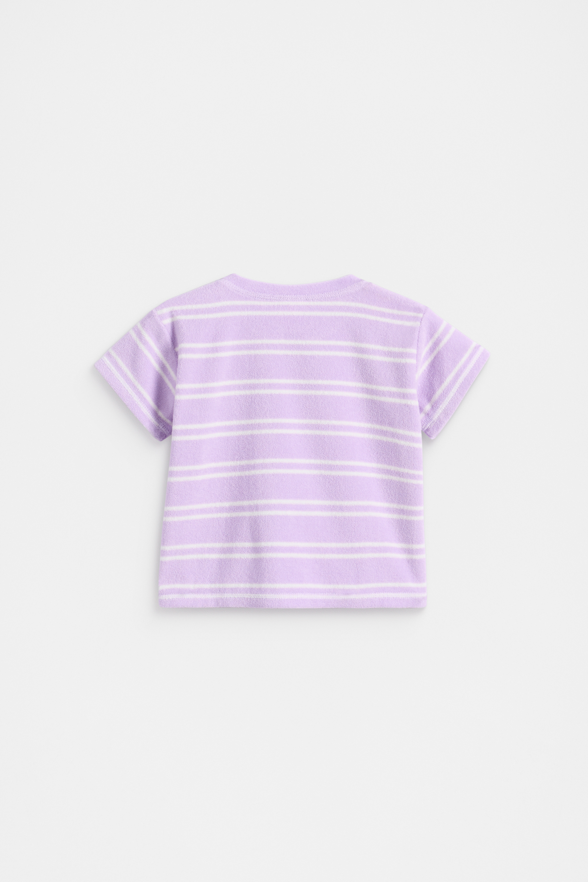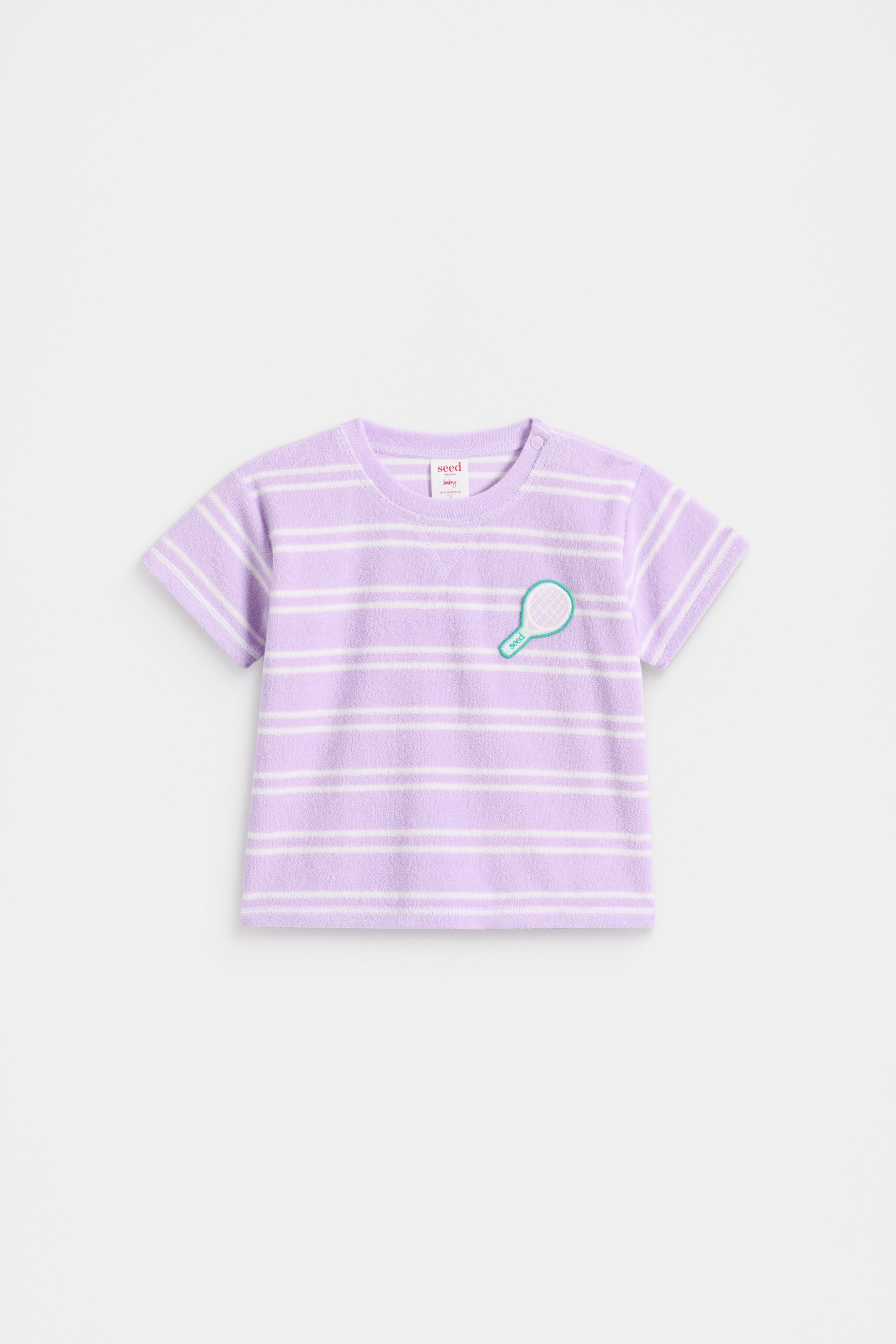 An easy option for summer, this t-shirt is a sweet and simple design. With a textured terry finish, it features a round neck, short sleeves, shoulder snaps, a stripe pattern and an embroidered patch. For a coordinated ensemble, pair with the matching shorts.