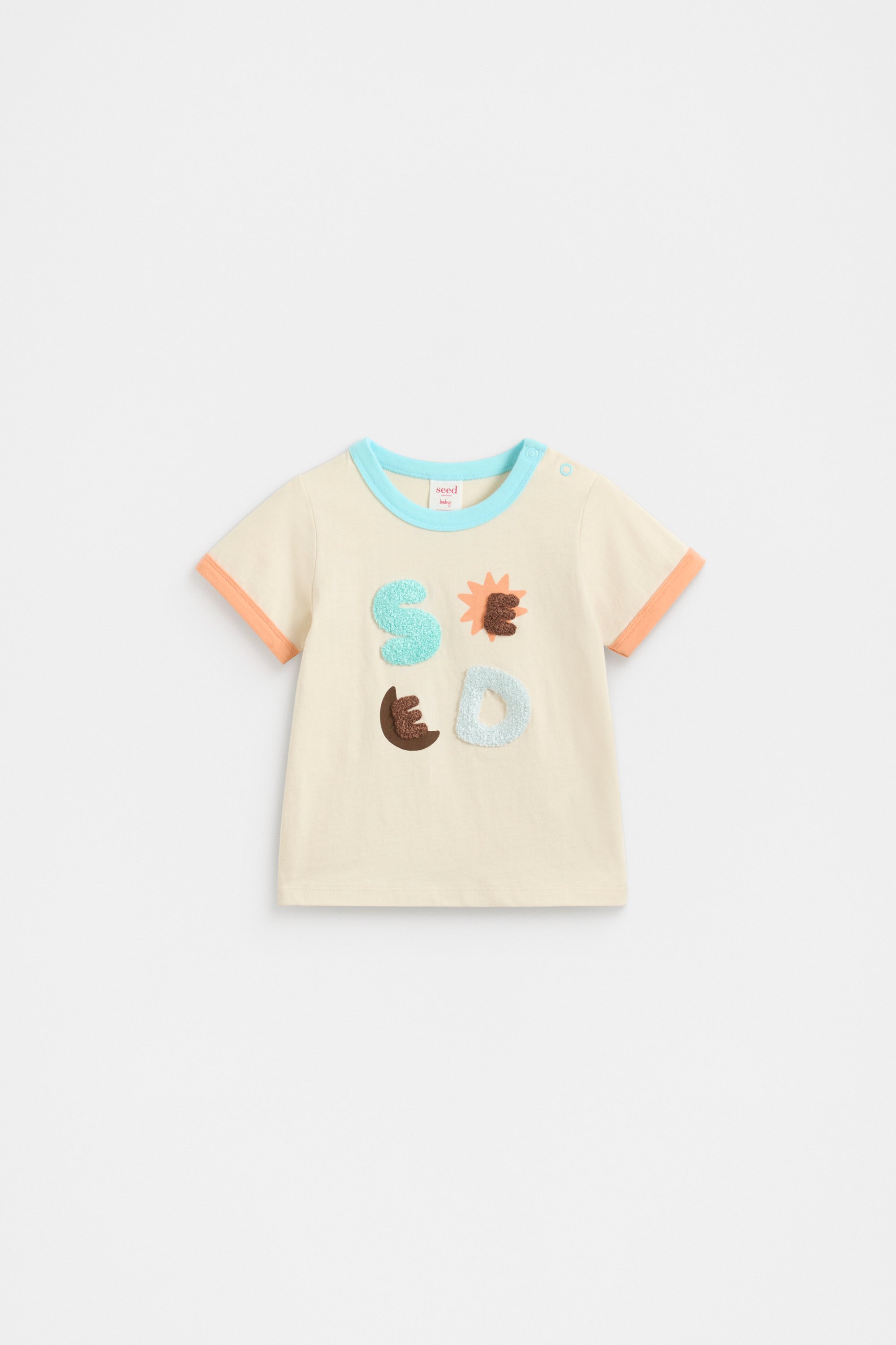 So sweet and cheerful, this tee is a retro style, ready to brighten up his wardrobe. Crafted in premium cotton for a comfortable fit, it features a round neck, short sleeves and the cutest chenille patch embroidery.