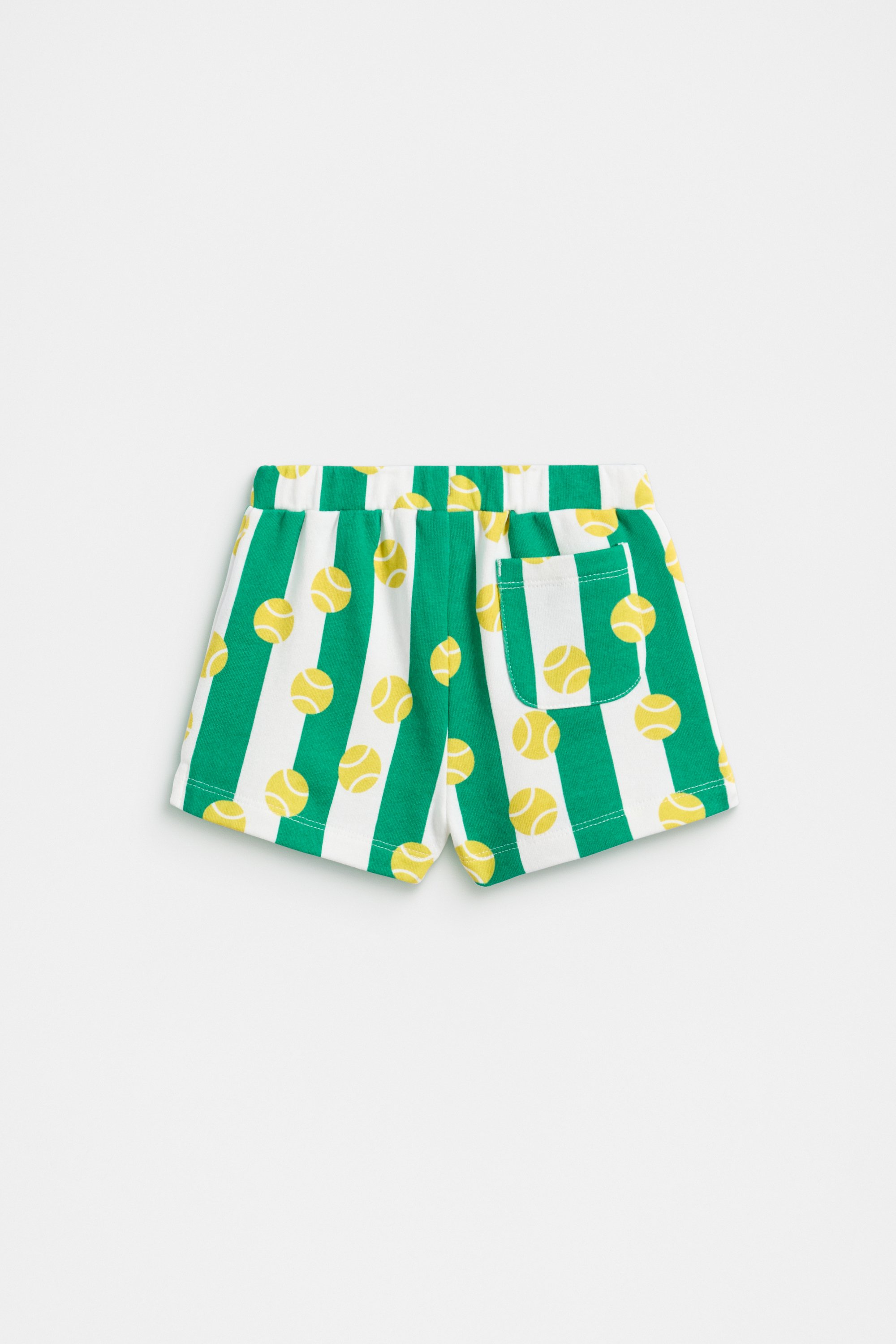 With a playful tennis print, these shorts are set to be new favourites in his summer wardrobe. Crafted in premium cotton, they feature an elasticated waistband, stripe design, back pocket and a repeated tennis ball motif.