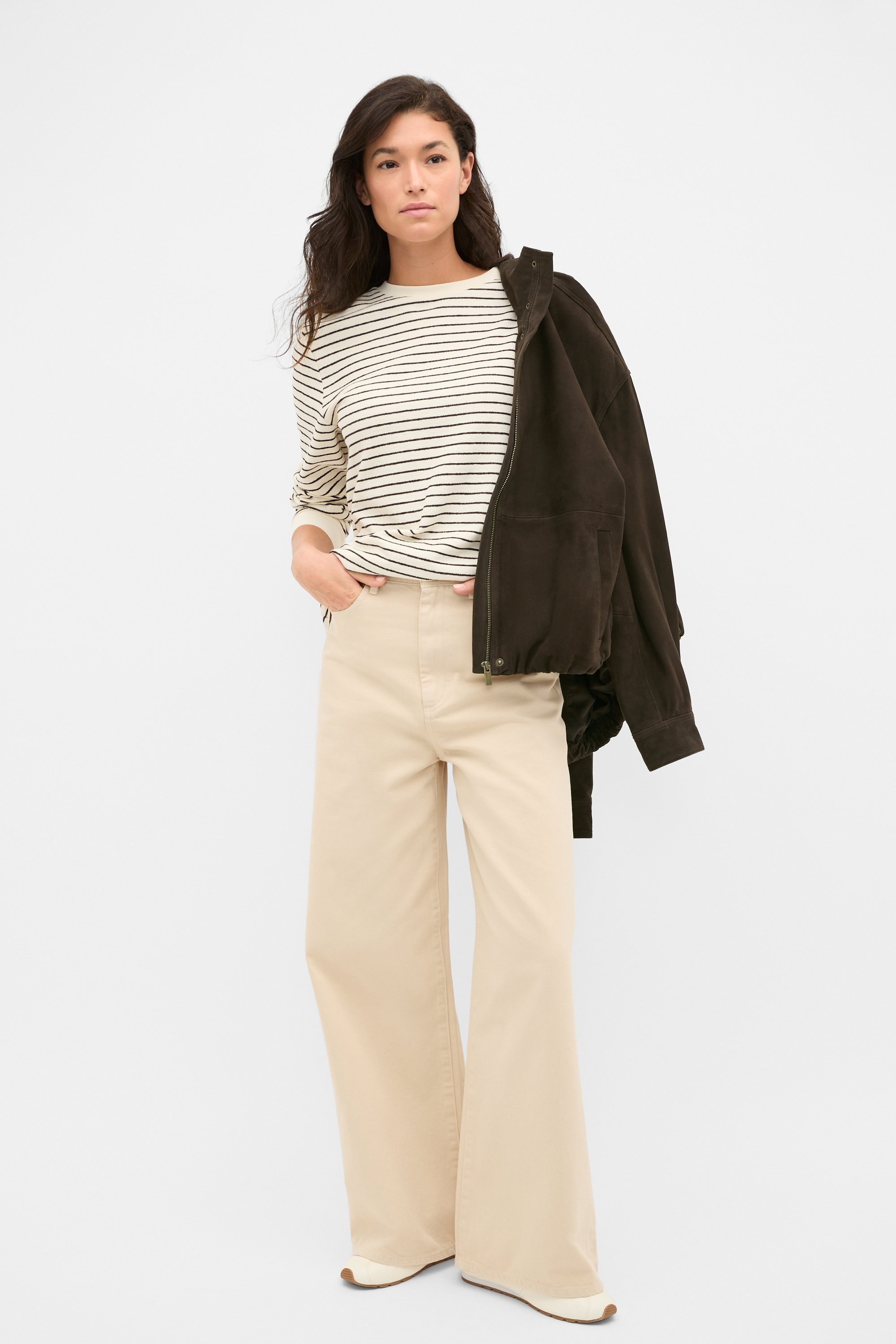 Textured Long Sleeve Relaxed Top  Coffee Bean Stripe  hi-res Textured Long Sleeve Relaxed Top  Coffee Bean Stripe  hi-res Textured Long Sleeve Relaxed Top  Coffee Bean Stripe  hi-res Textured Long Sleeve Relaxed Top  Coffee Bean Stripe  hi-res