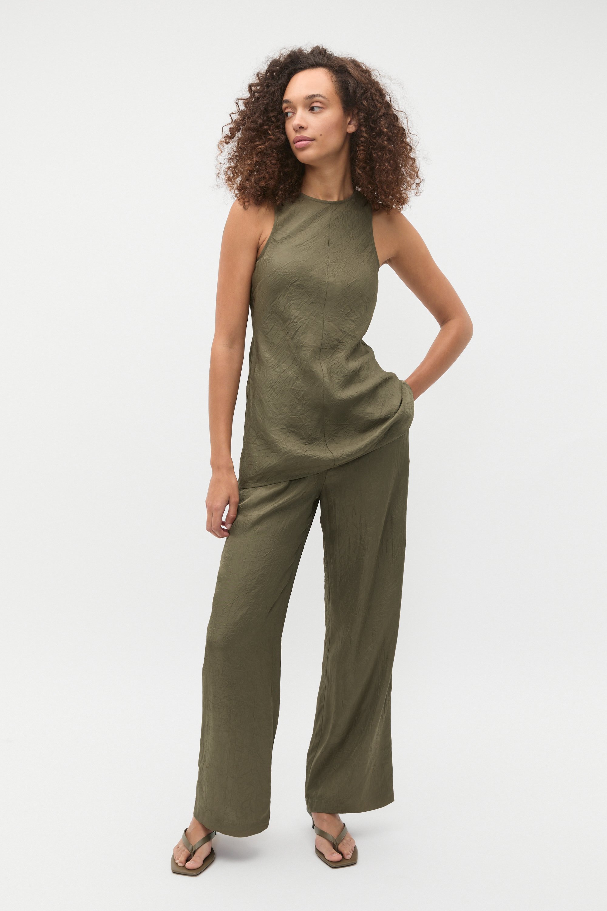 Textured Satin Gathered Pant  Olive Leaf  hi-res Textured Satin Gathered Pant  Olive Leaf  hi-res Textured Satin Gathered Pant  Olive Leaf  hi-res Textured Satin Gathered Pant  Olive Leaf  hi-res