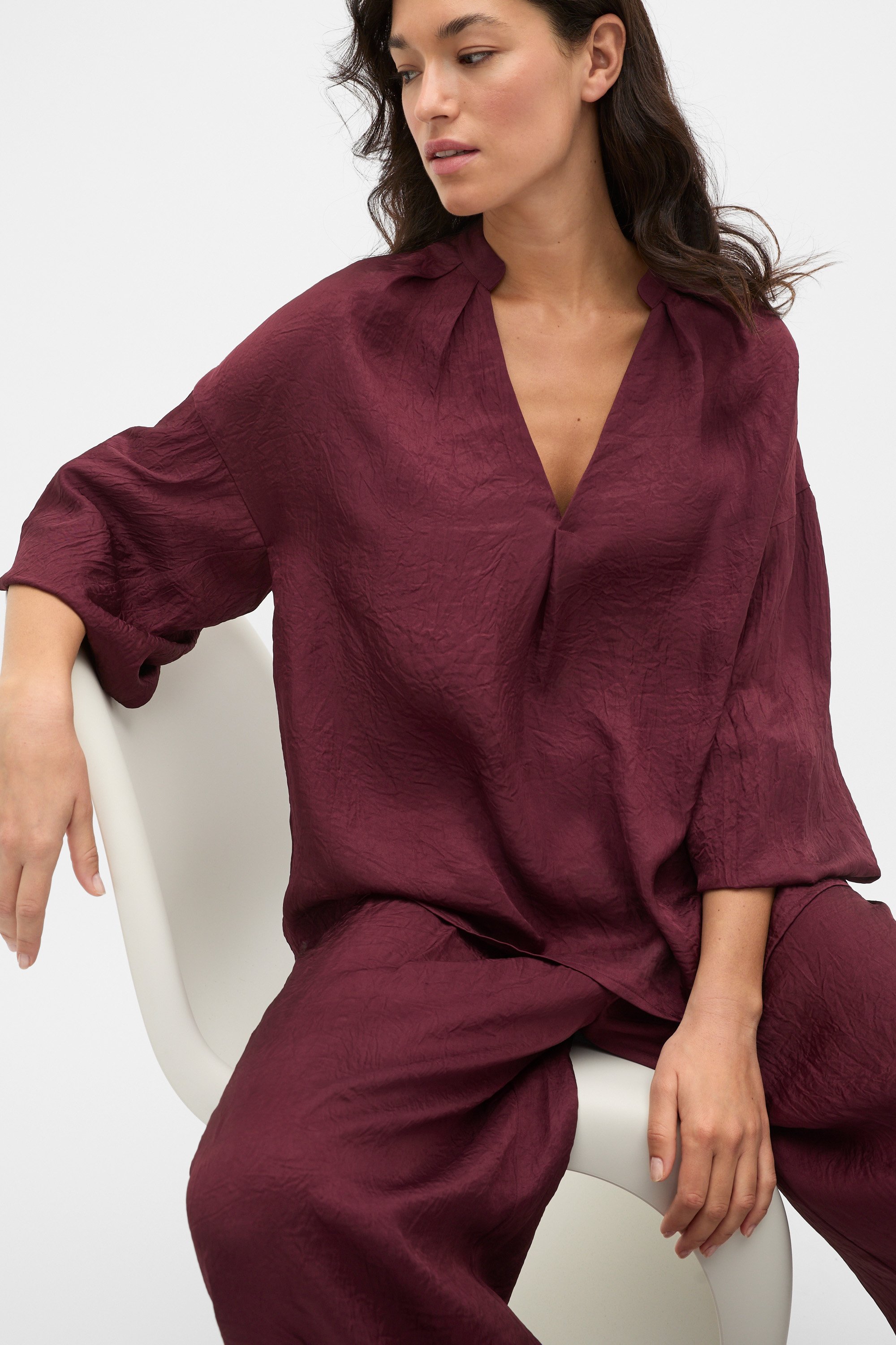 Textured Satin Half Placket Blouse  Plum Red  hi-res Textured Satin Half Placket Blouse  Plum Red  hi-res Textured Satin Half Placket Blouse  Plum Red  hi-res Textured Satin Half Placket Blouse  Plum Red  hi-res Textured Satin Half Placket Blouse  Plum Red  hi-res Textured Satin Half Placket Blouse  Plum Red  hi-res