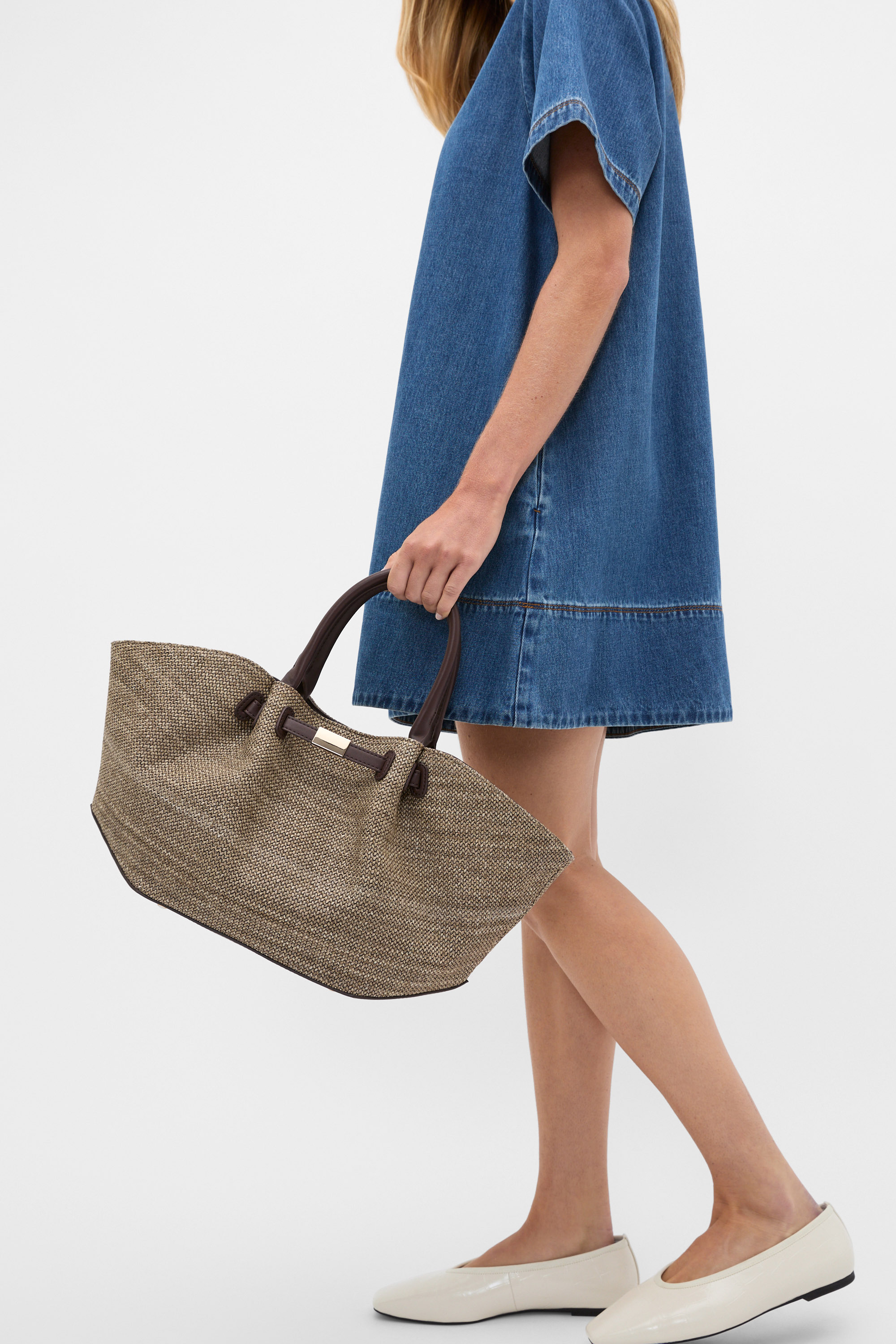 Adding a new kind of elegance to your collection, this textured tote is a contemporary must-have. Finished in a textured fabric, it features a top handle detail as well as a detachable crossbody strap, a magnetic closure at the topline and contrast trims in a leather-look PU.