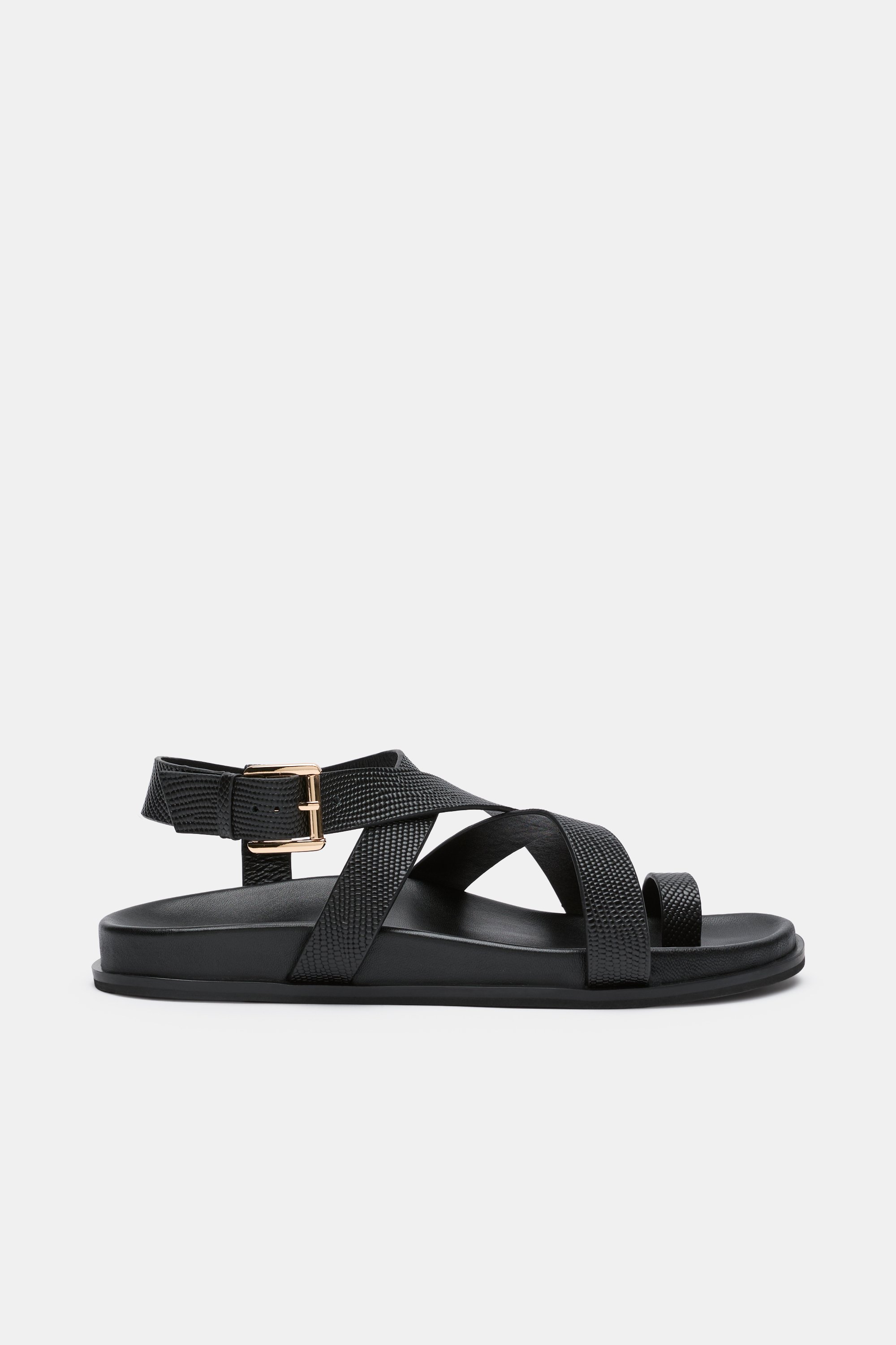 With a comfortable moulded footbed and a timeless design, these sandals are set to be your new everyday pair. Crafted in premium leather, they feature a strappy upper, an adjustable ankle strap and soft gold hardware details.