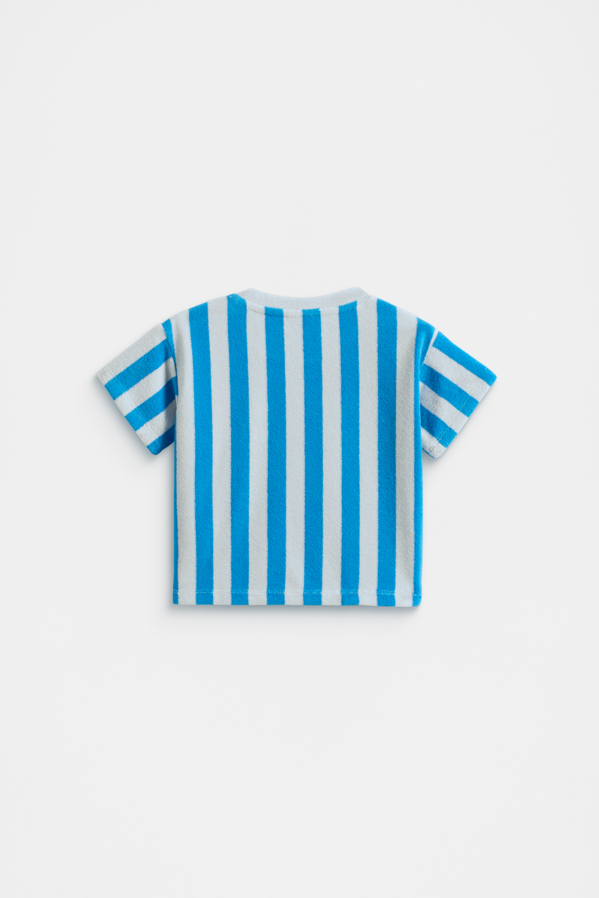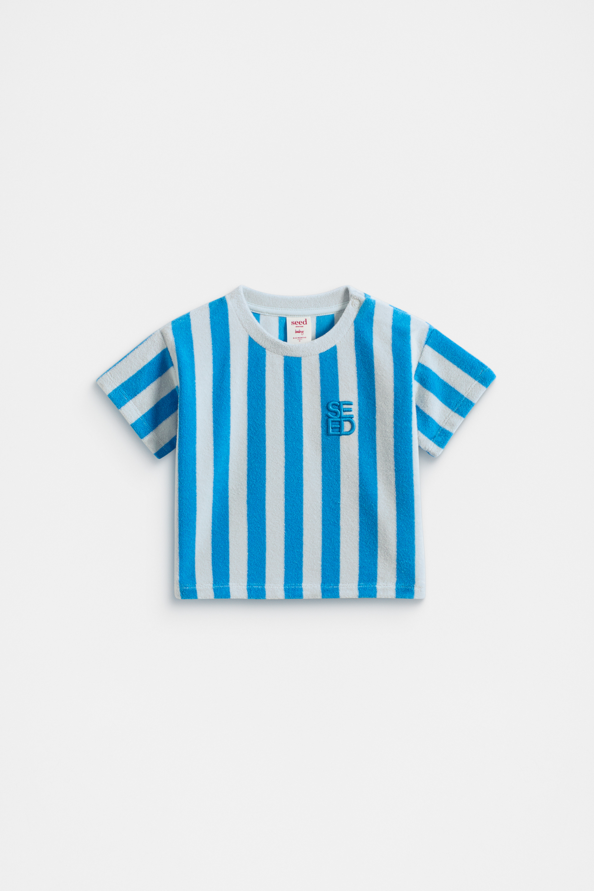 Add a touch of texture to his little wardrobe with this tee, ideal for summer. Crafted in a cotton towelling blend it features a round neck, short sleeves, stripe design, embroidered Seed logo and a relaxed fit.