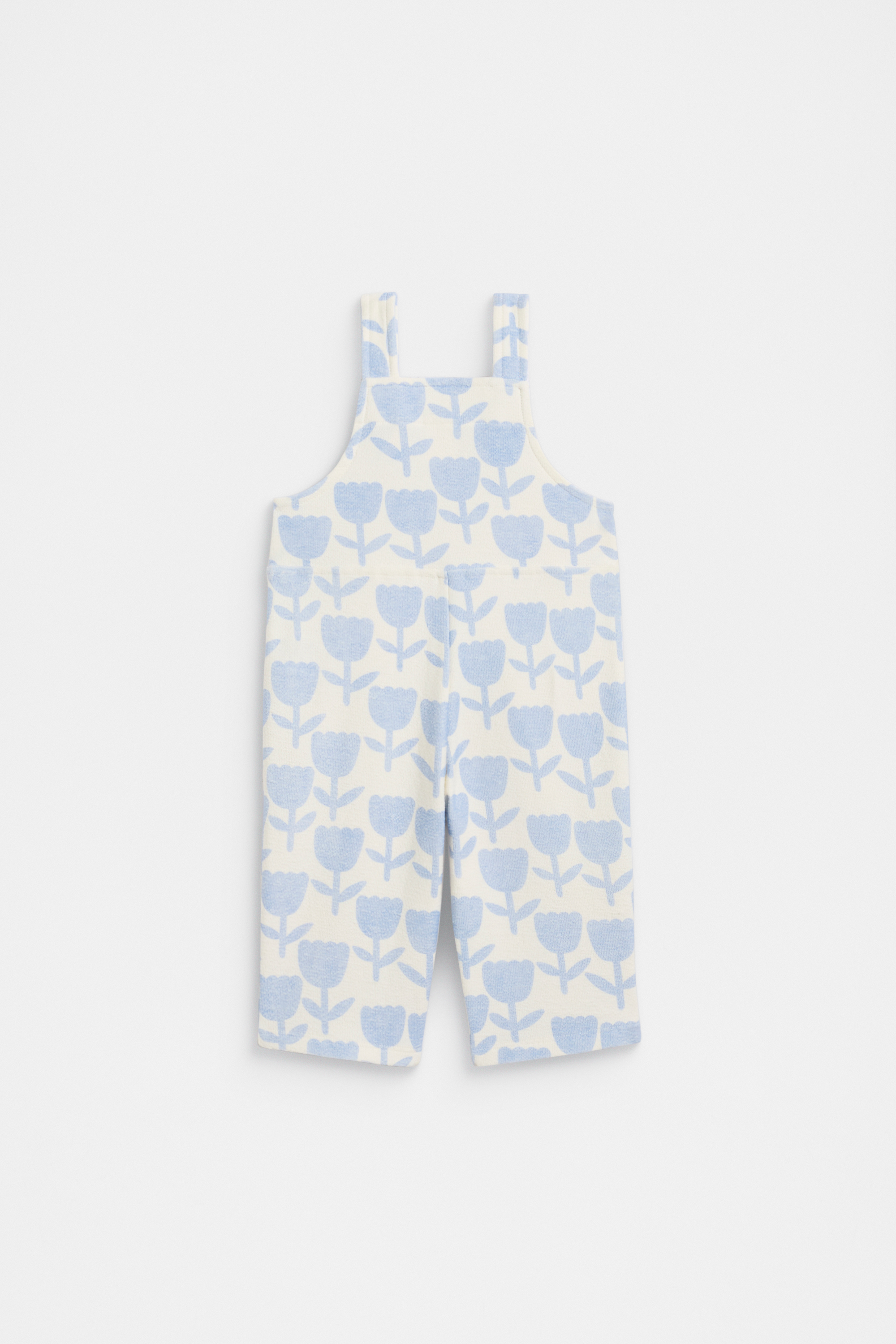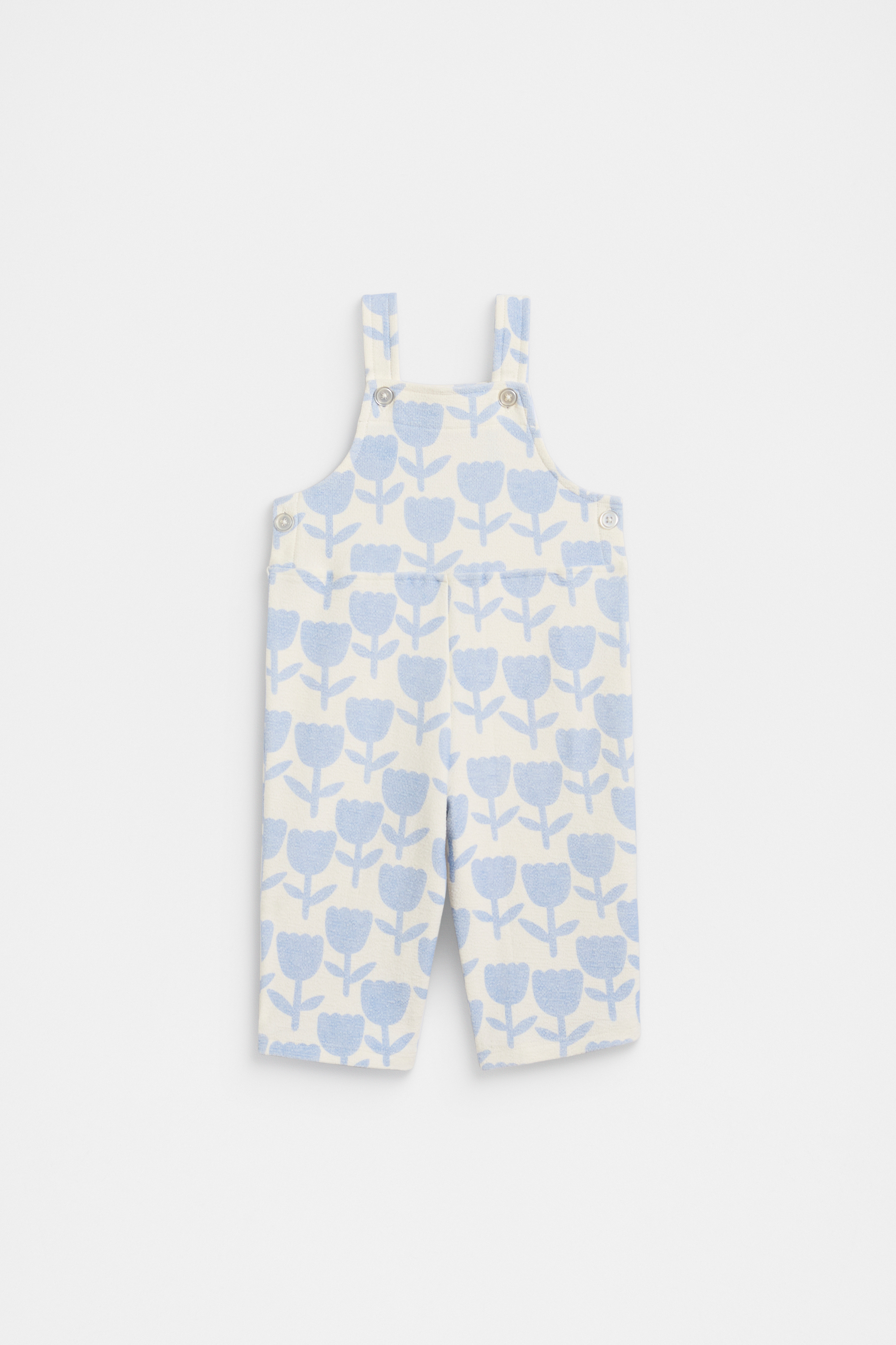A super sweet head-to-toe in soft cotton, these overalls are ready to be worn on repeat. They feature adjustable straps, side buttons, an all-over tulip print and a textured finish.