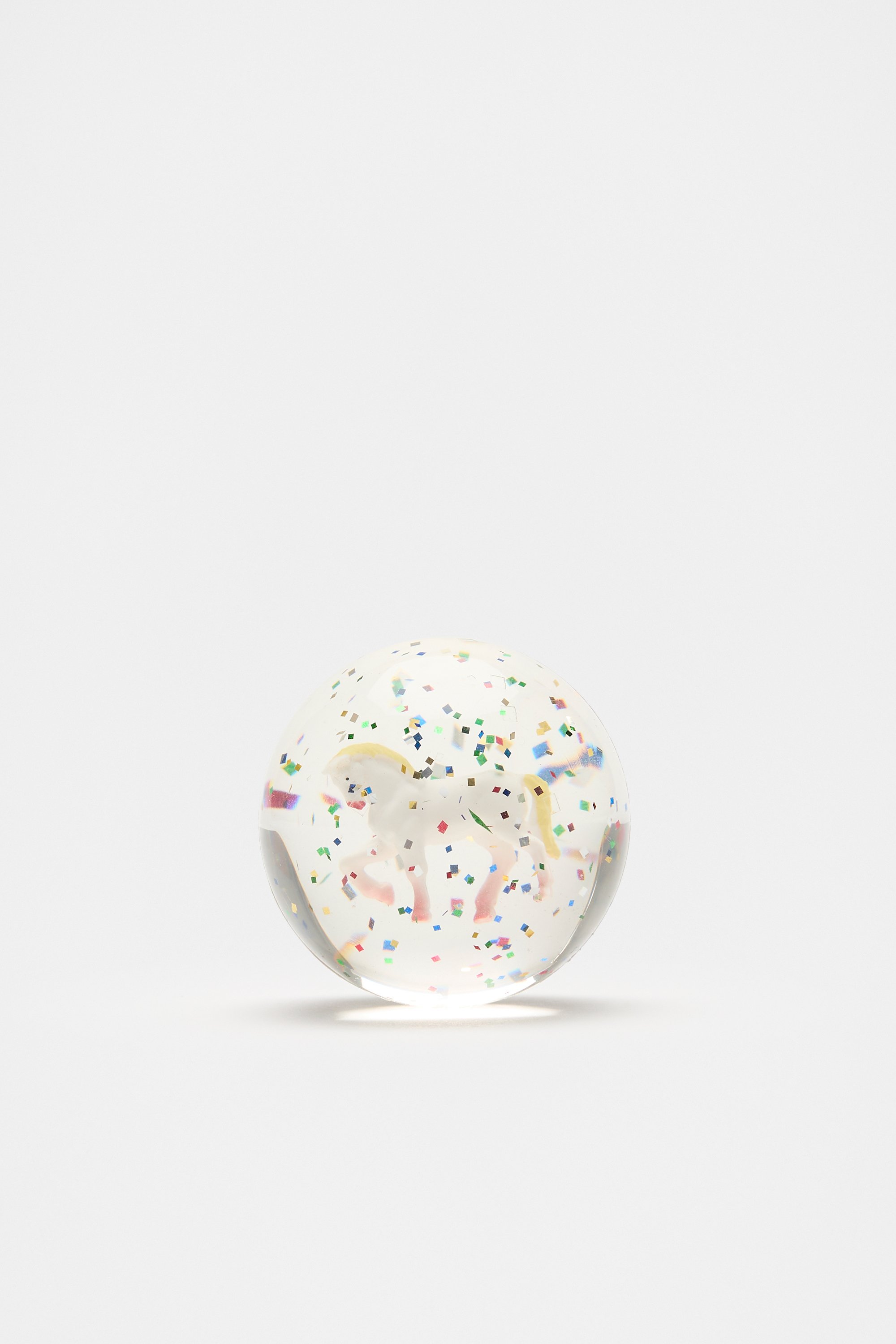 Guarantee hours of fun with this playful and bright bouncy ball. It features a glittery unicorn design.