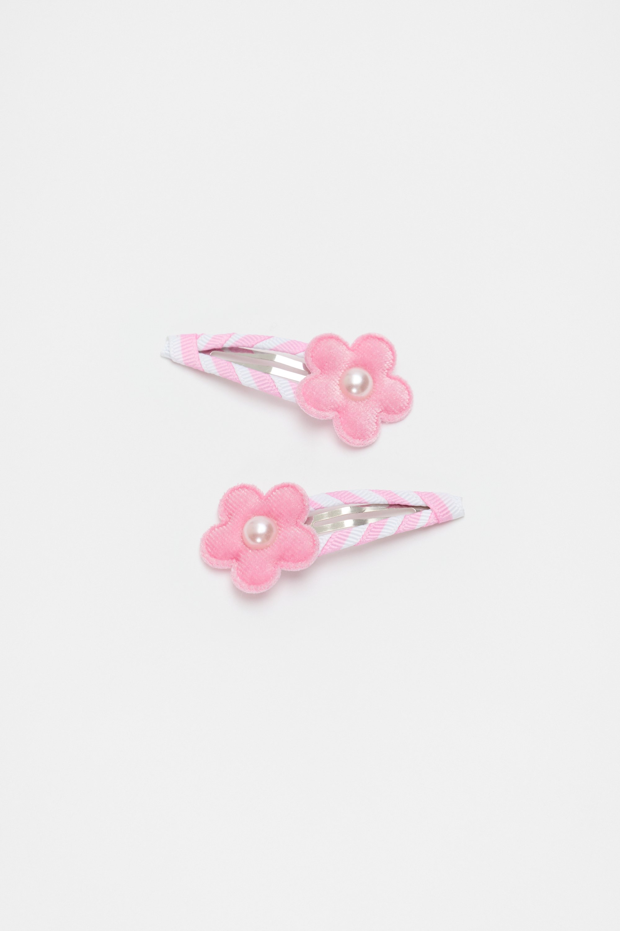 Adorably sweet, these grosgrain ribbon snaps feature a velvet flower with pearl centres. This product is not a toy and is not suitable for children three years and under.
