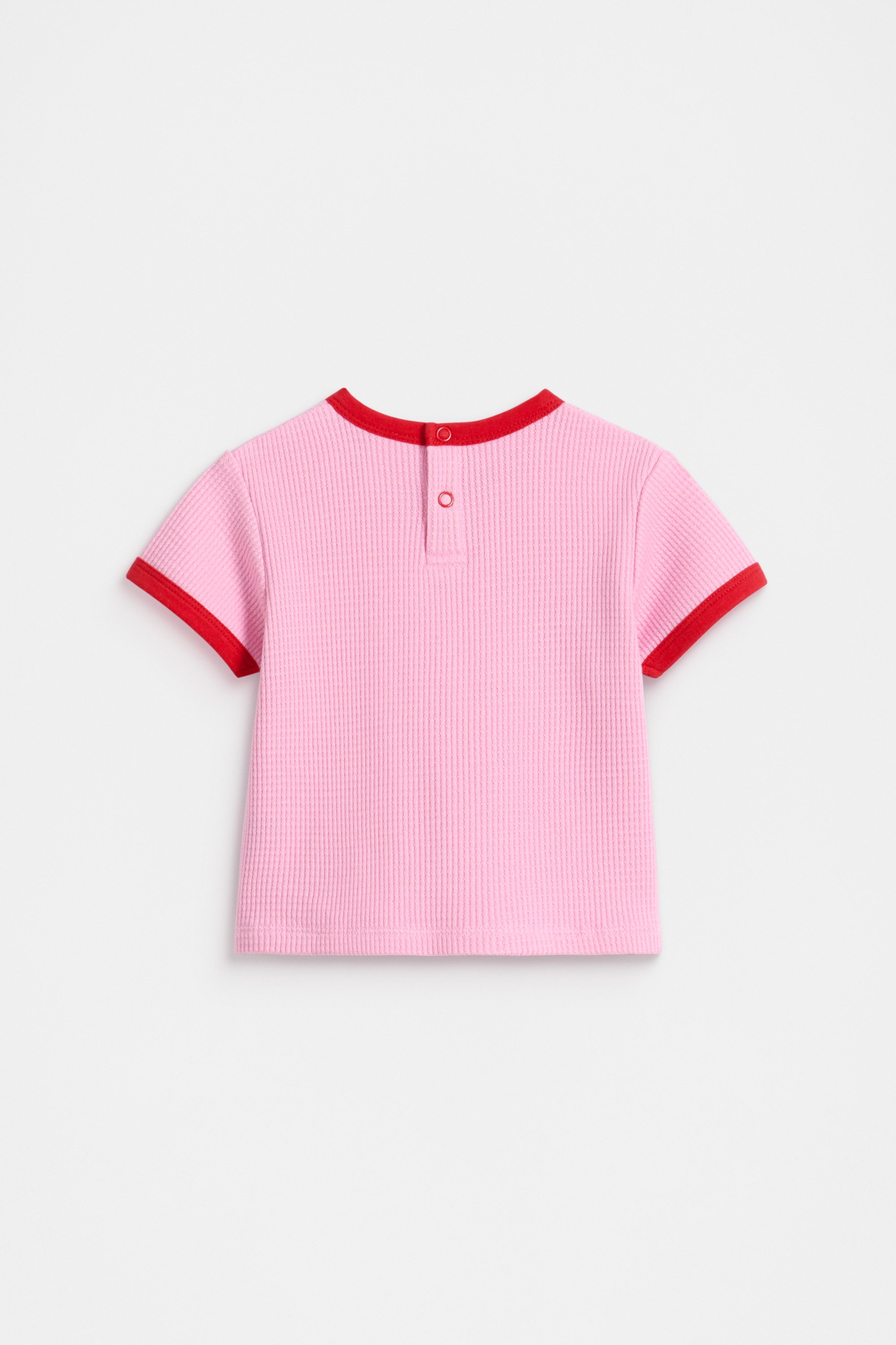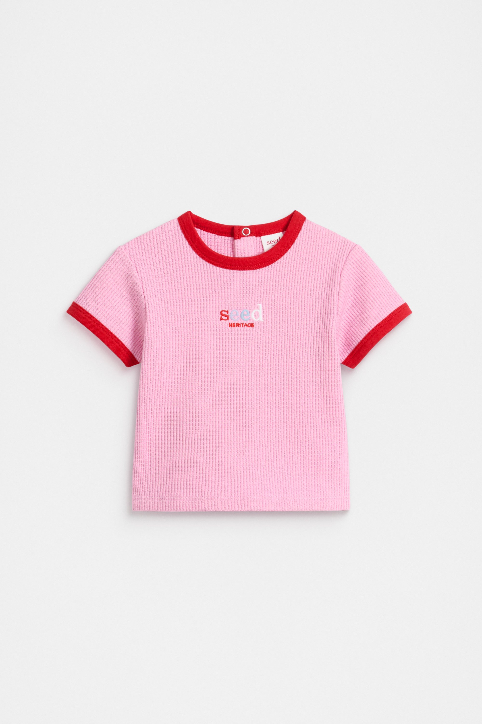 With a soft waffle finish, this is a bright and comfortable style you'll reach for on repeat. Crafted in premium cotton, it features a round neck, short sleeves and button snaps at the back for quick and easy changes.