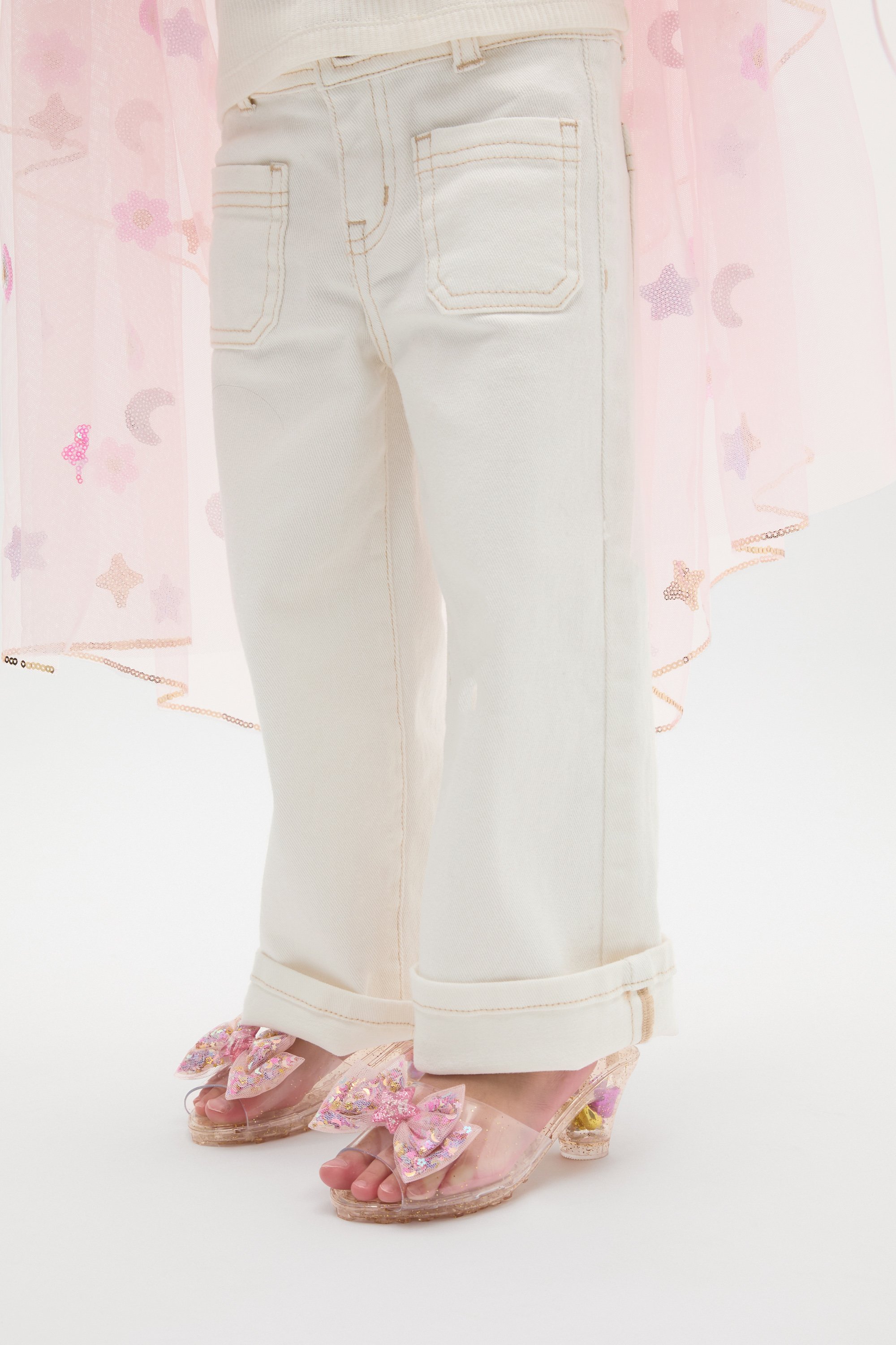 Sparkly and sweet, these dress up shoes are perfect for the costume box. They feature a small bead-filled heel and glittery bows on top. Pair with the whimsical witch set and cape. Not recommended for children three years and under, potential choking hazard.