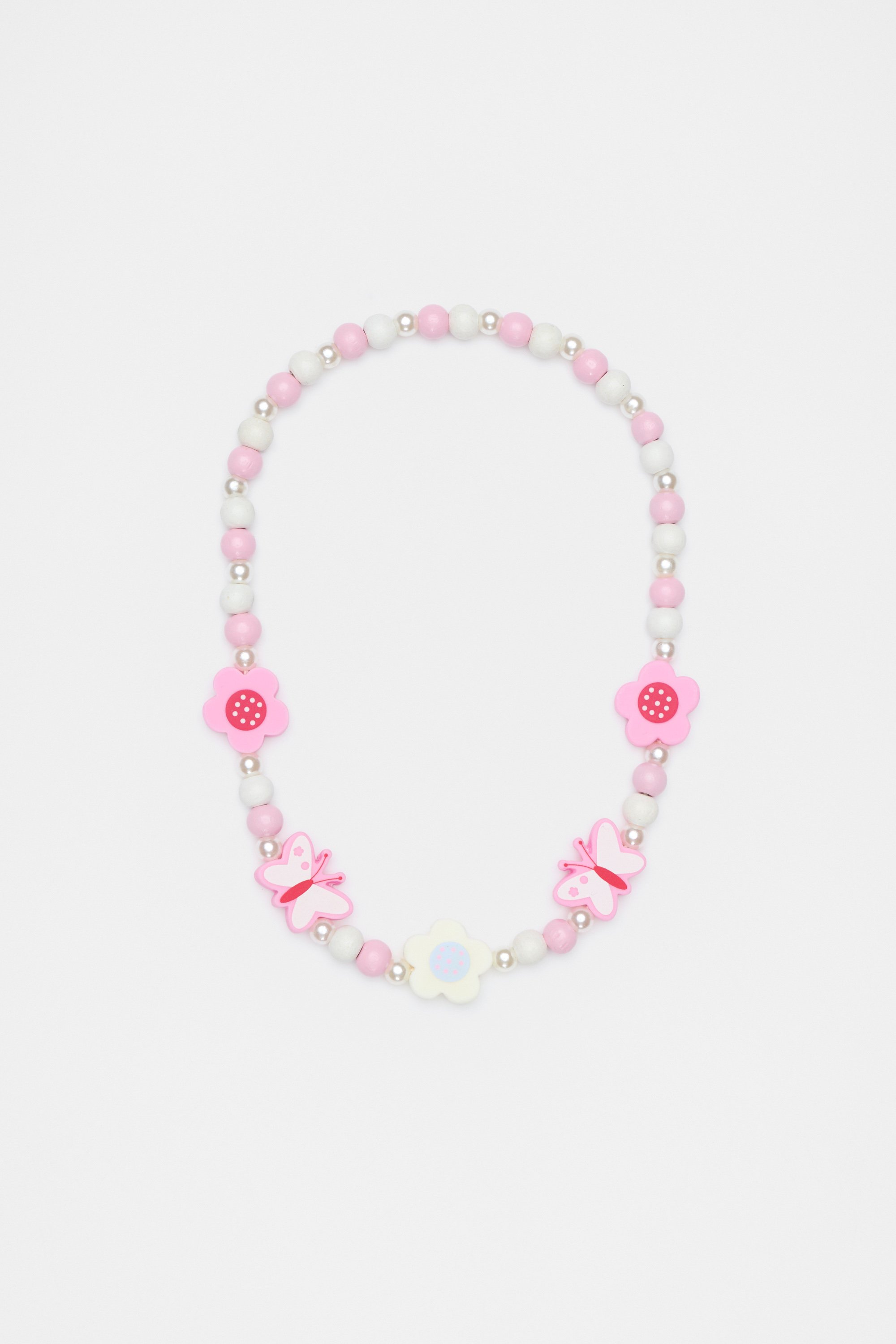 Colourful and sweet, this necklace is one she'll adore. It features a beaded design with a flower and a butterfly. On a stretchy elastic, it's easy to take on and off. Pair with the matching bracelet for the cutest set. This product is not a toy and is not suitable for children three years and under.