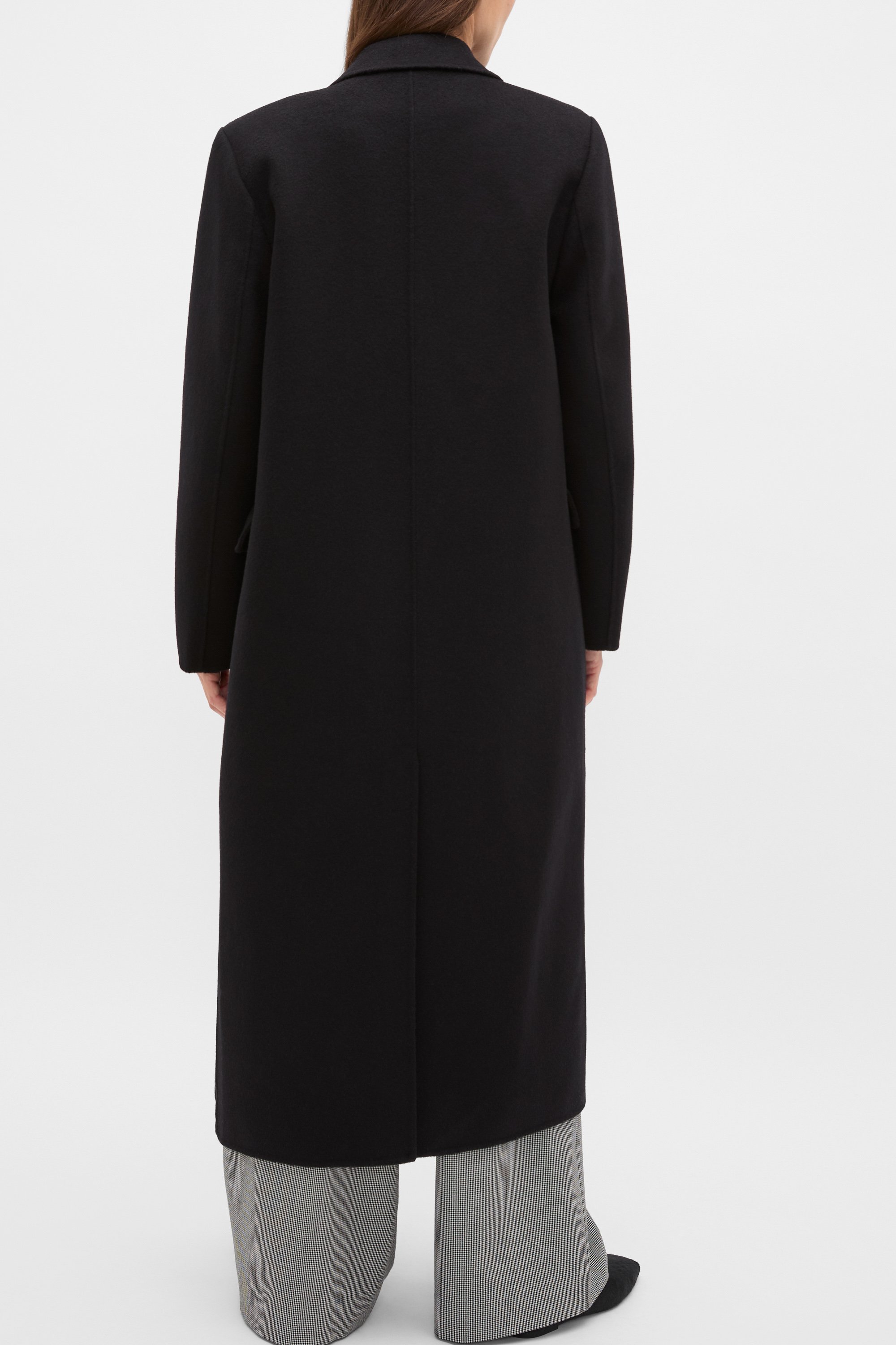 Simple, elegant, and utterly essential, this coat is a timeless classic. Crafted in a soft wool blend with a structured shape, it's a double-breasted style with a notched lapel, long sleeves and a longline cut. Designed for elegant winter layering, this coat is one you'll turn to time and time again.