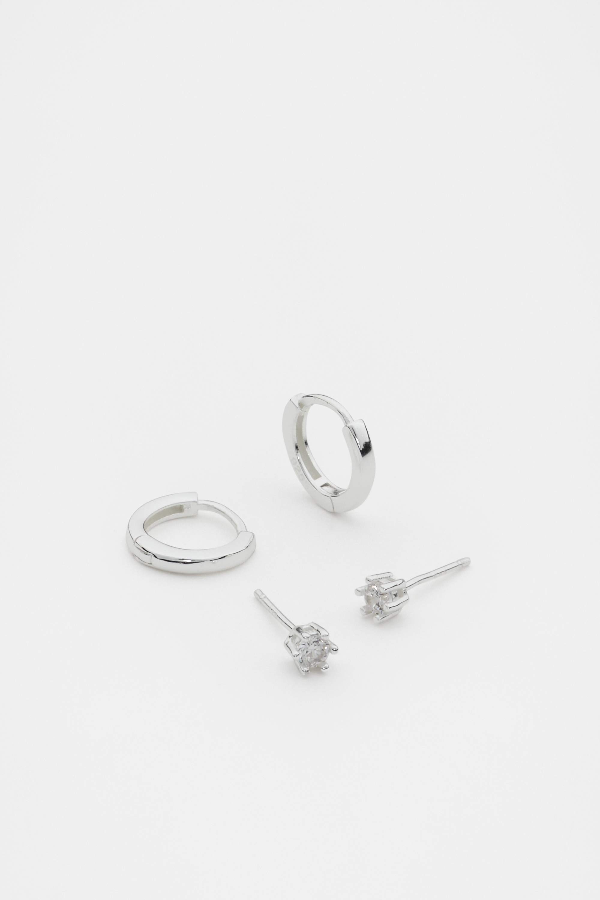 Elegant and understated, this earring set is ready for your everyday styling. Perfect to be worn together, the set features a simple stud with a cubic zirconia as well as a set of small hoops.
