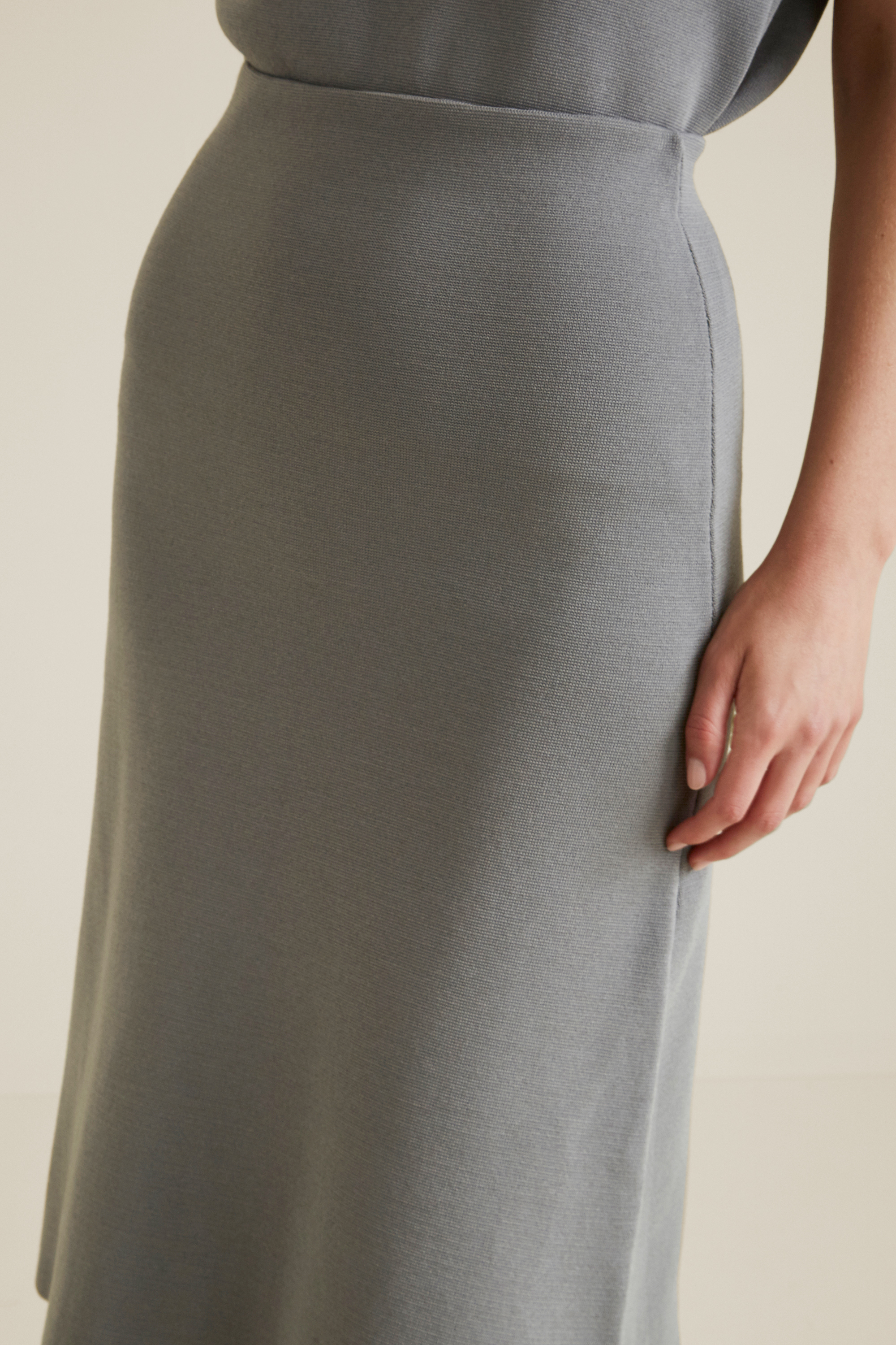 This A-Line Crepe Skirt is crafted from a structured knitted fabrication and is designed to sit high on the waist