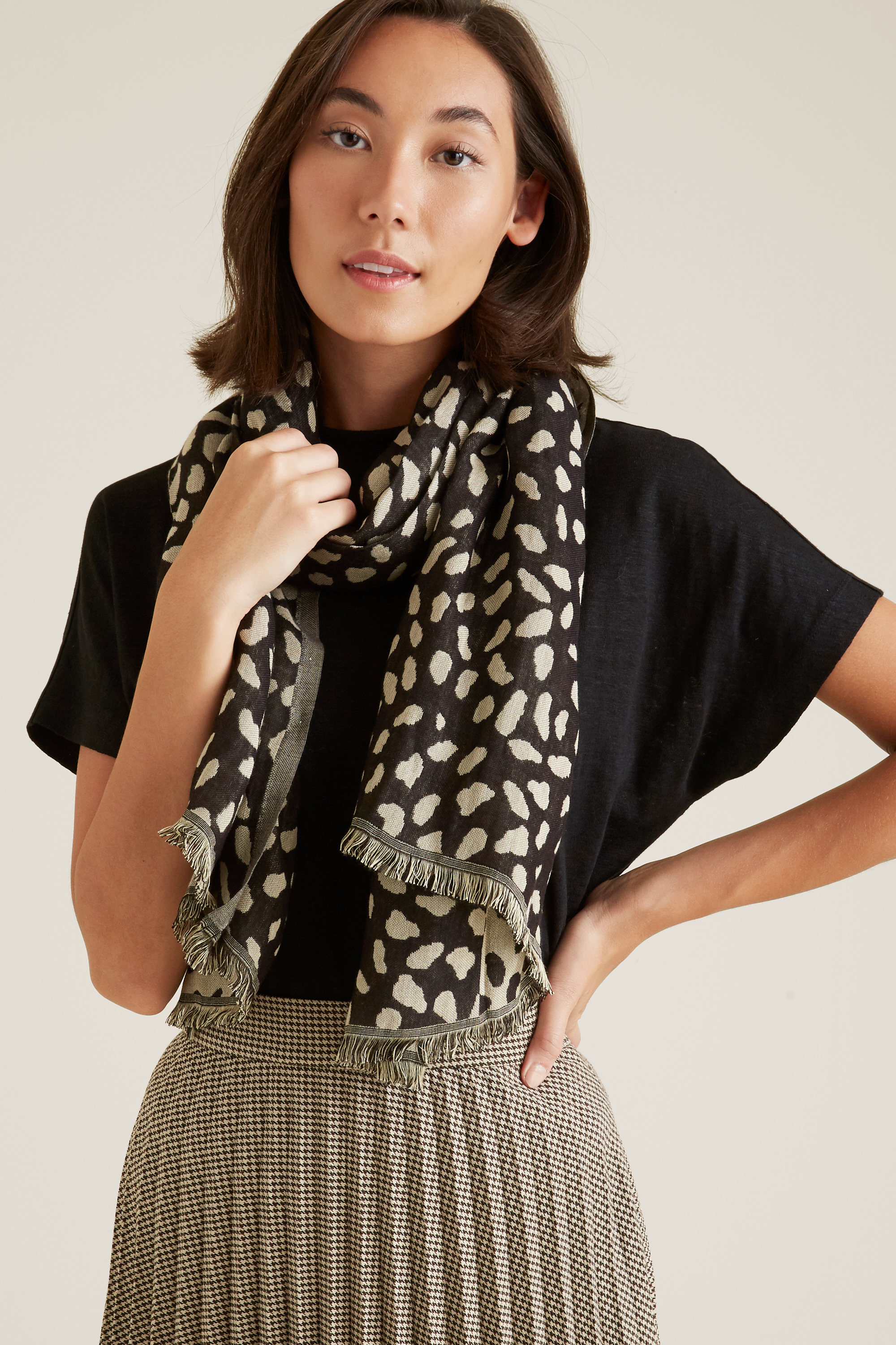 Adorned with an abstract print, this Spot Jacquard Scarf is designed for layering on cool-change summer days.