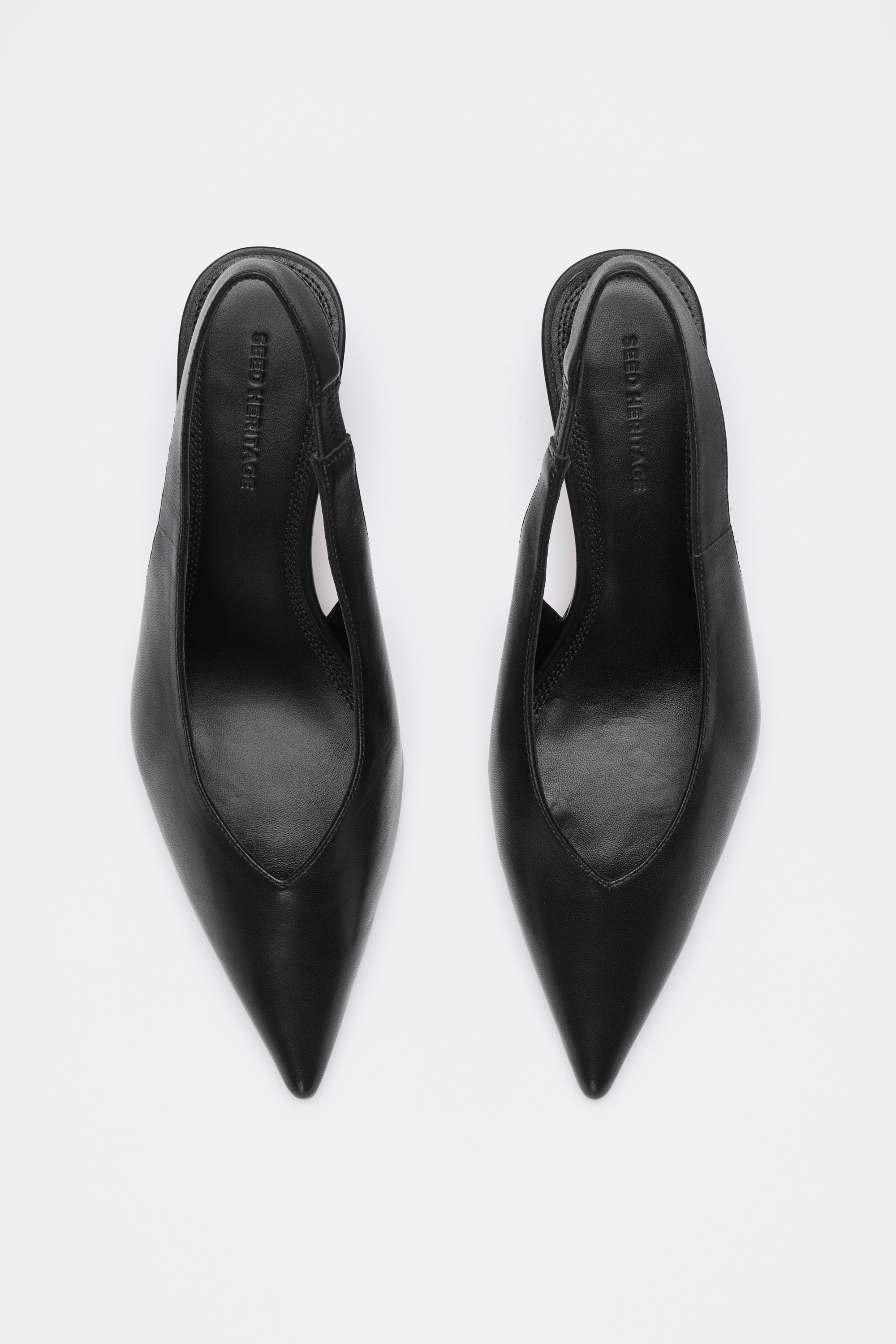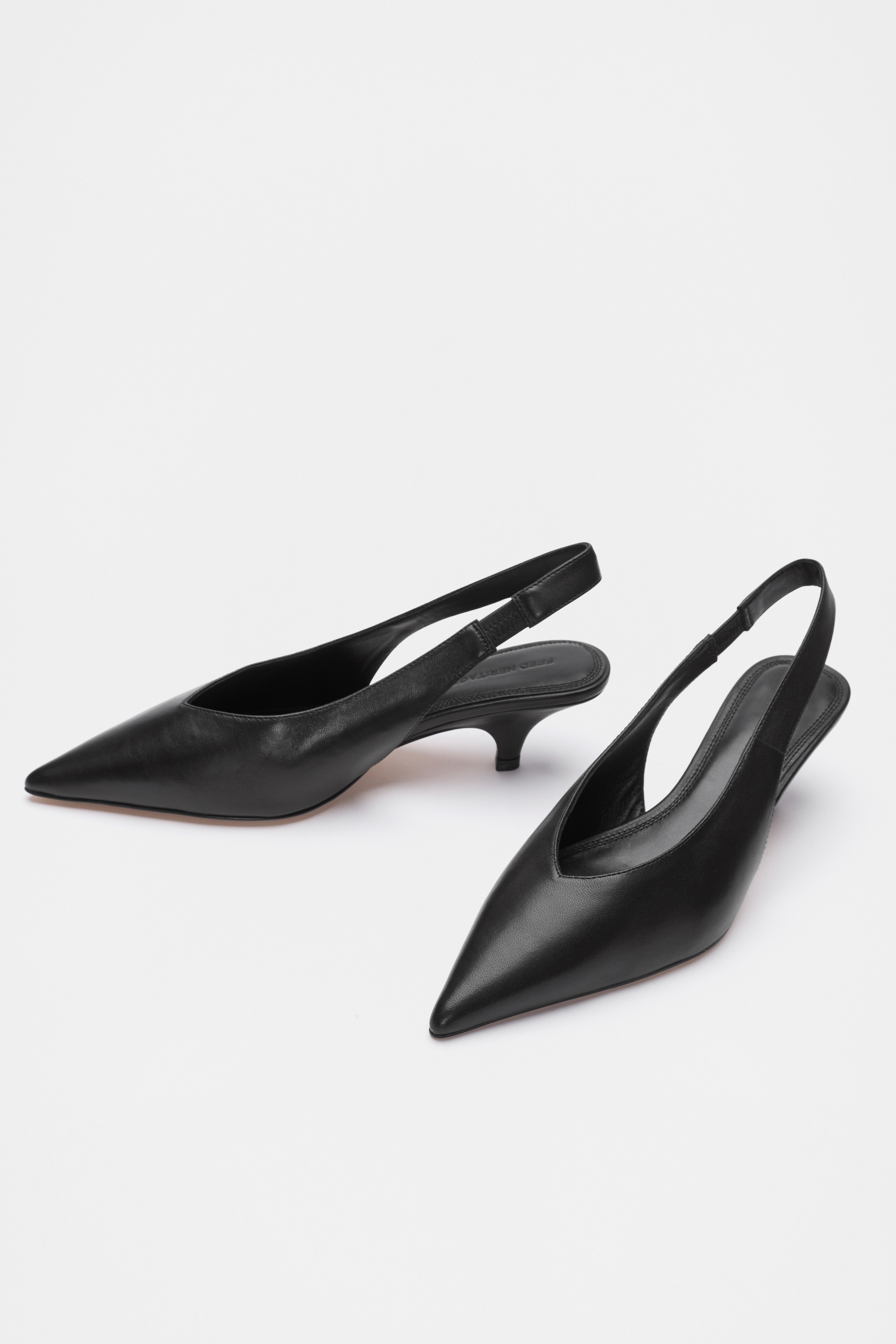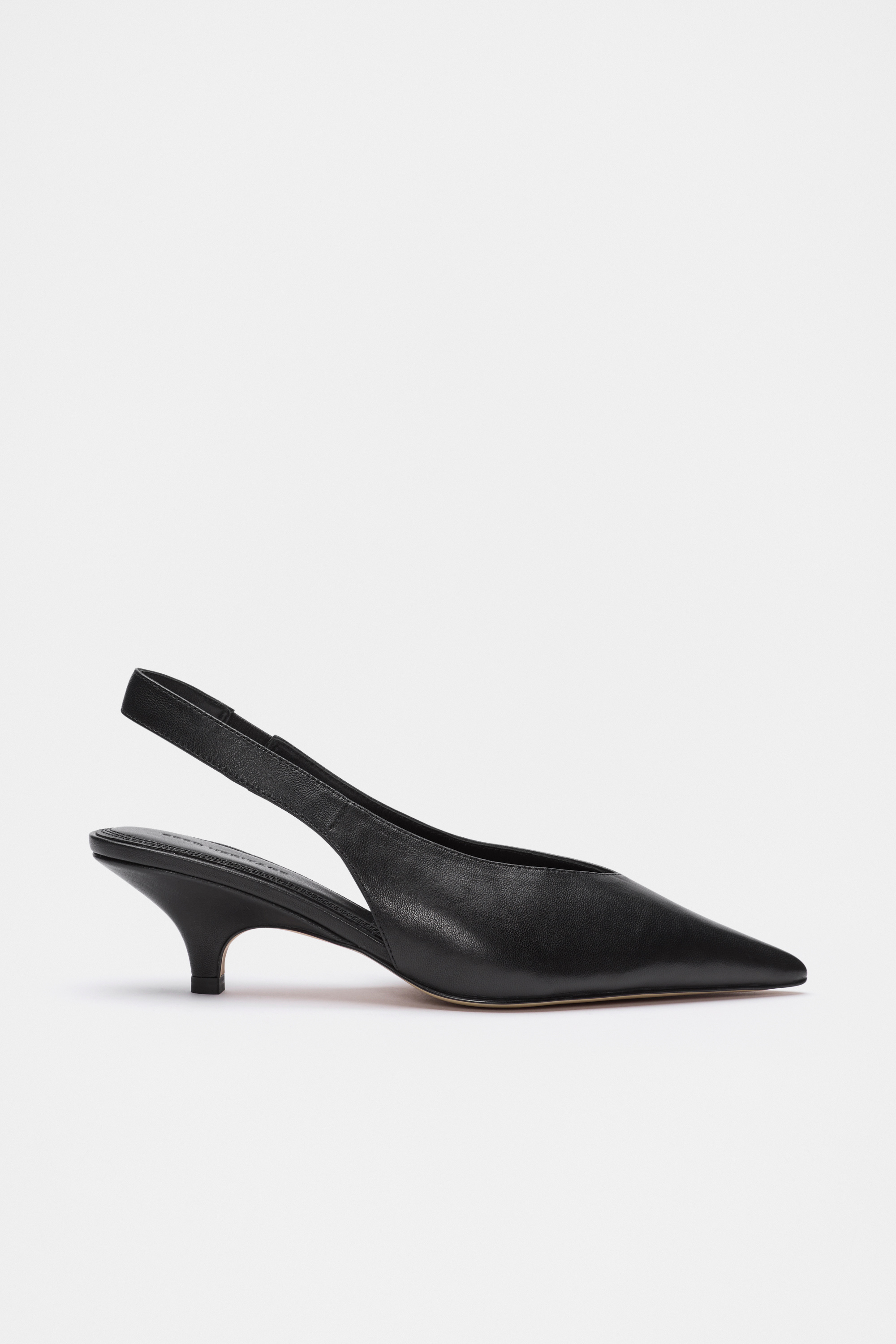 A classic design, these heels add a touch of luxury to your wardrobe. Crafted with premium leather, they're a pointed toe style with a sling back and a low heel. Pair with jeans to elevate casual days or pair with your eveningwear for easy sophistication.
