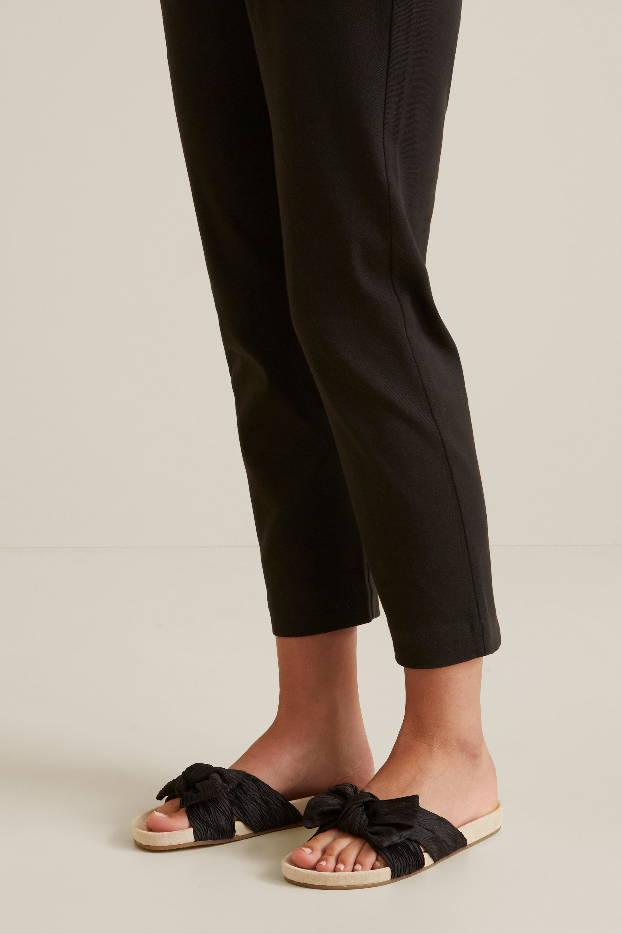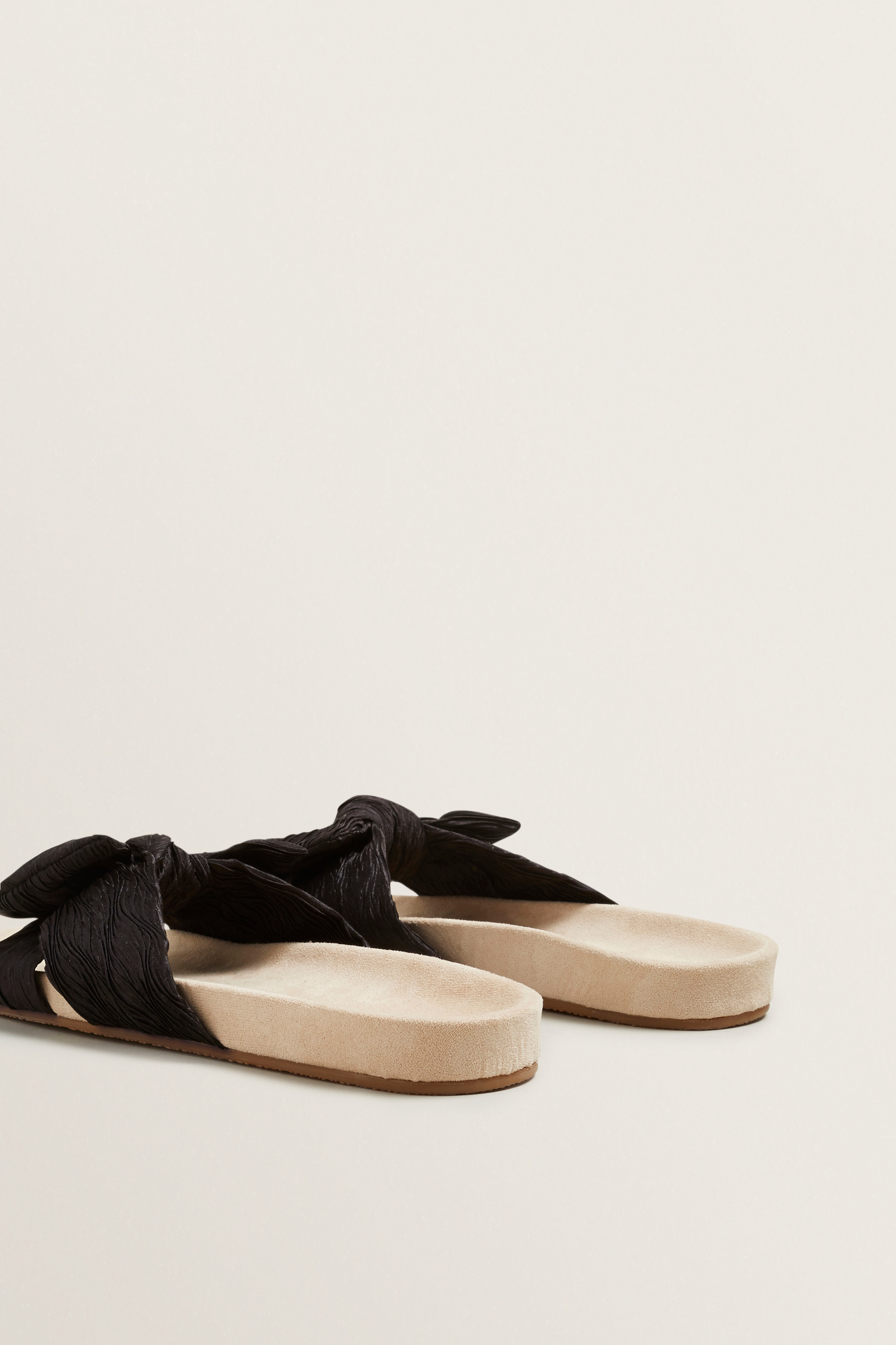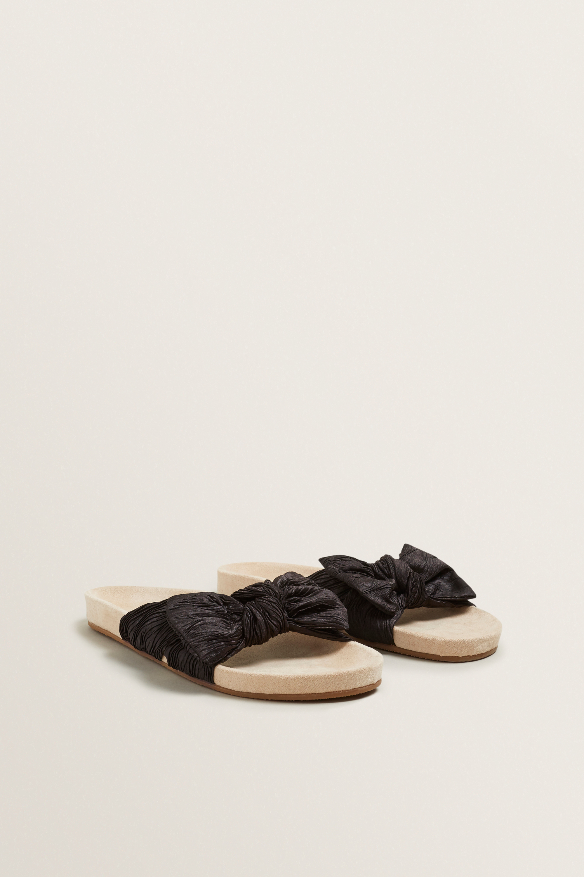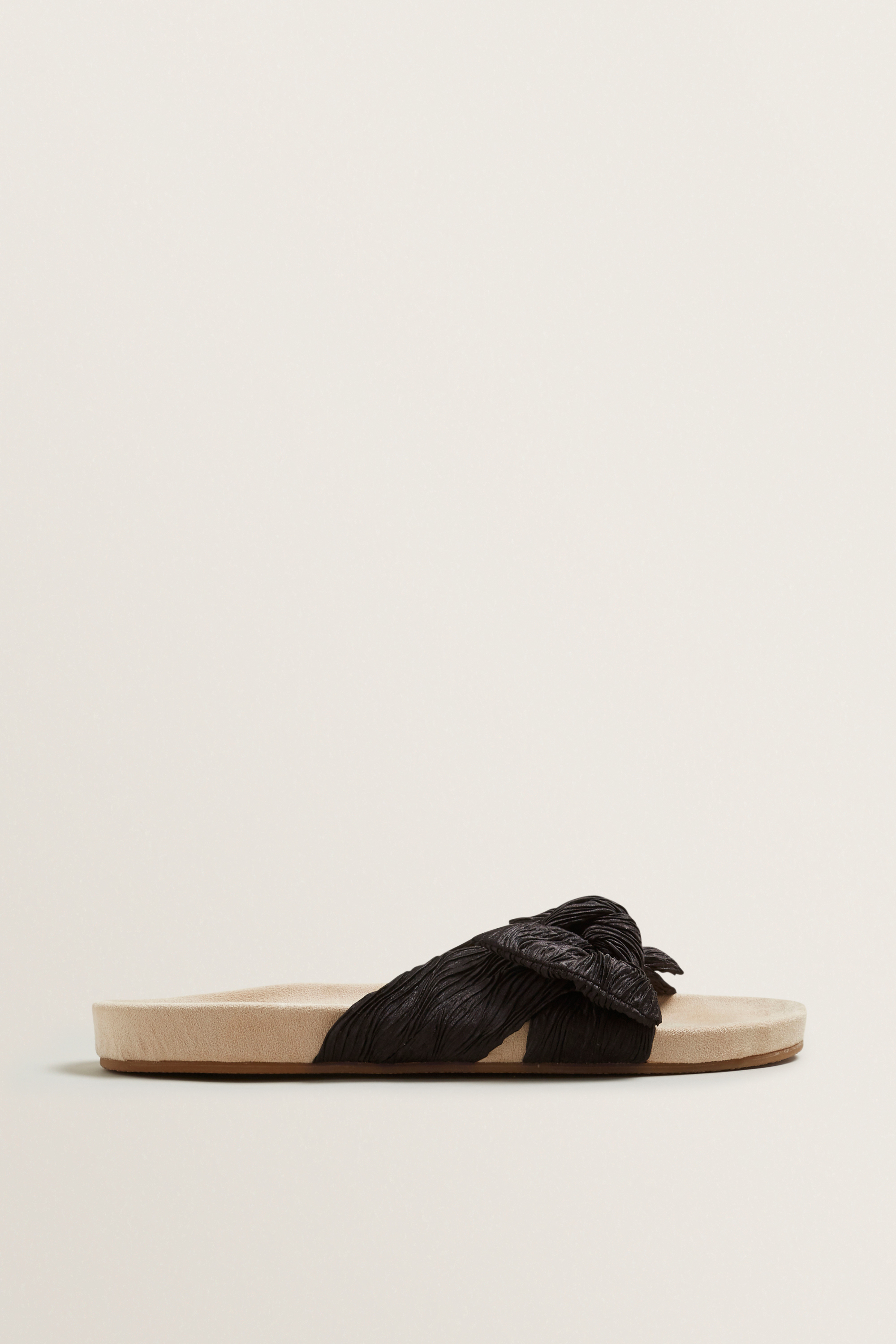 Adorned in a textured pleat, these Amy Bow Slides are detailed with a moulded foodbed, toe strap and decorative bow.