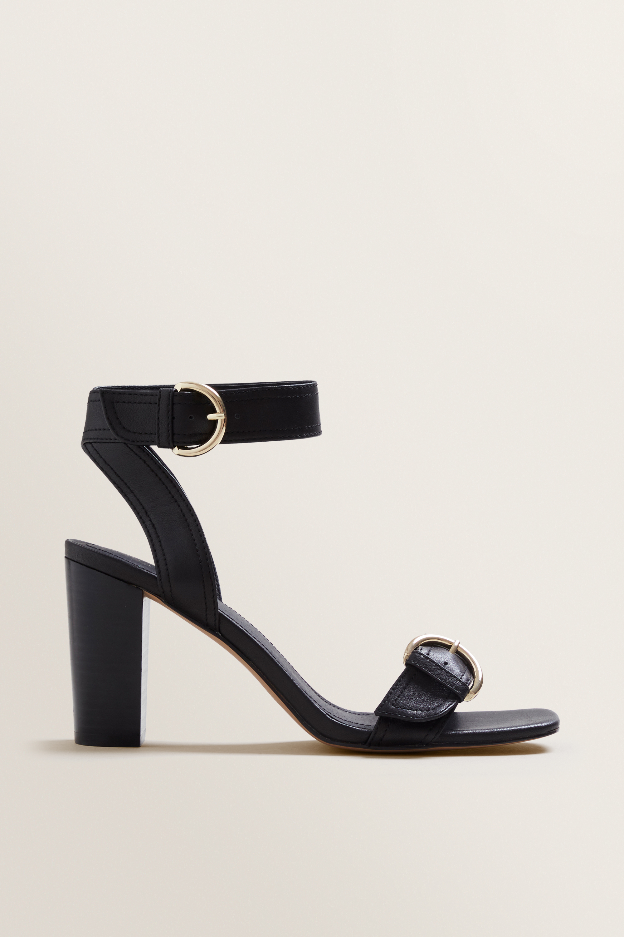 Designed with comfort in mind, the Annie Block Heel Sandal features gold buckle details, wood stack block heel and leather upper and lining.