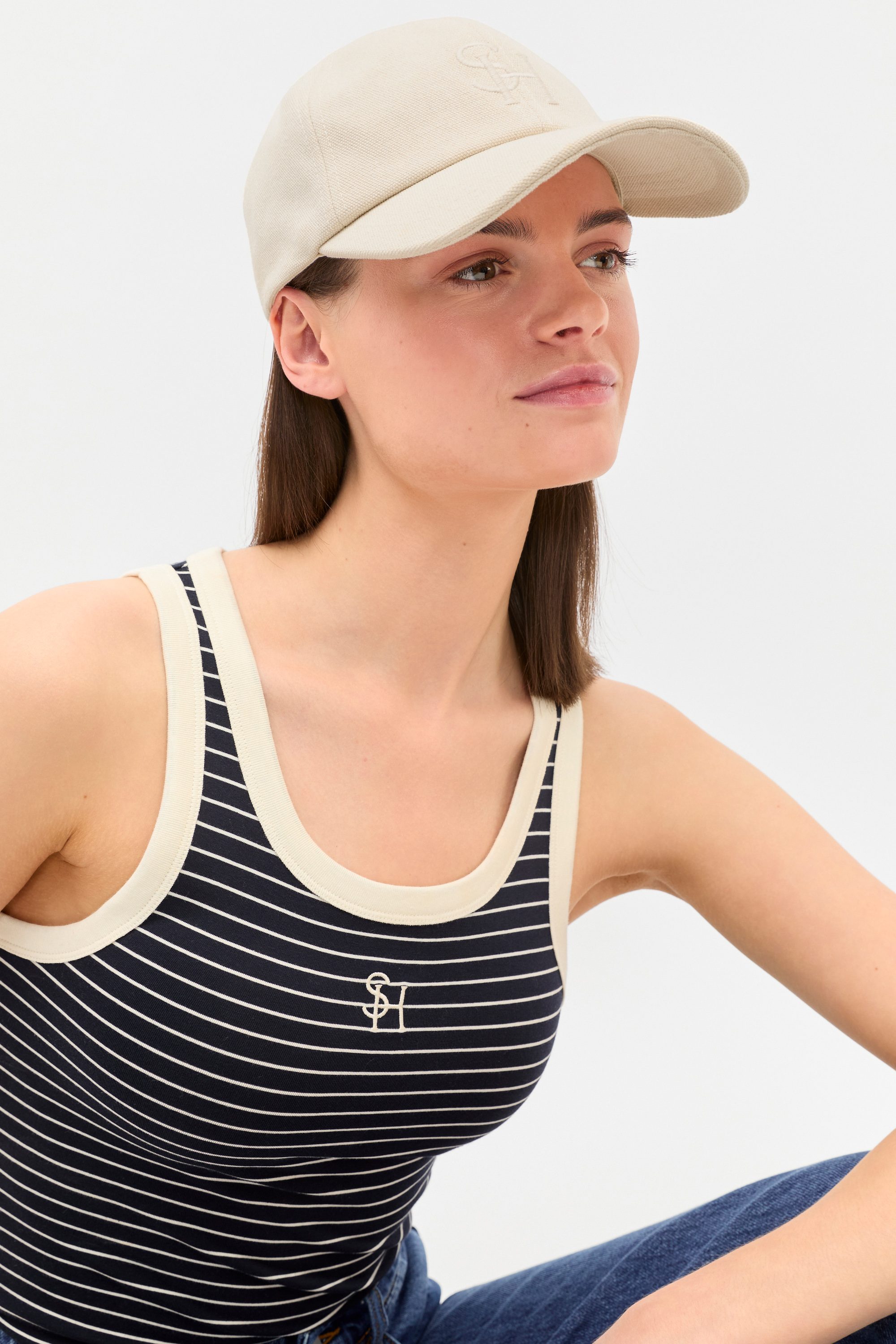 Chic and understated, this cap is a classic style for your wardrobe update. It features a curved brim, an adjustable back and an embroidered Seed Heritage anniversary logo.