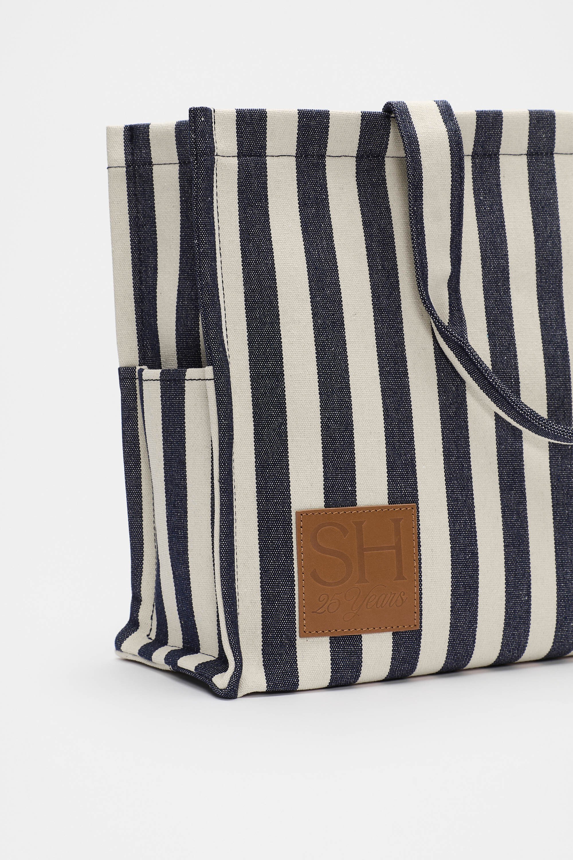 Designed to elevate your everyday style, this tote bag is a chic and practical must-have. Crafted in a soft cotton blend, it features a top zip closure, a side pocket, an internal zip pocket and an internal water bottle holder. It's detailed with a classic stripe design and a Seed Heritage anniversary leather patch.
