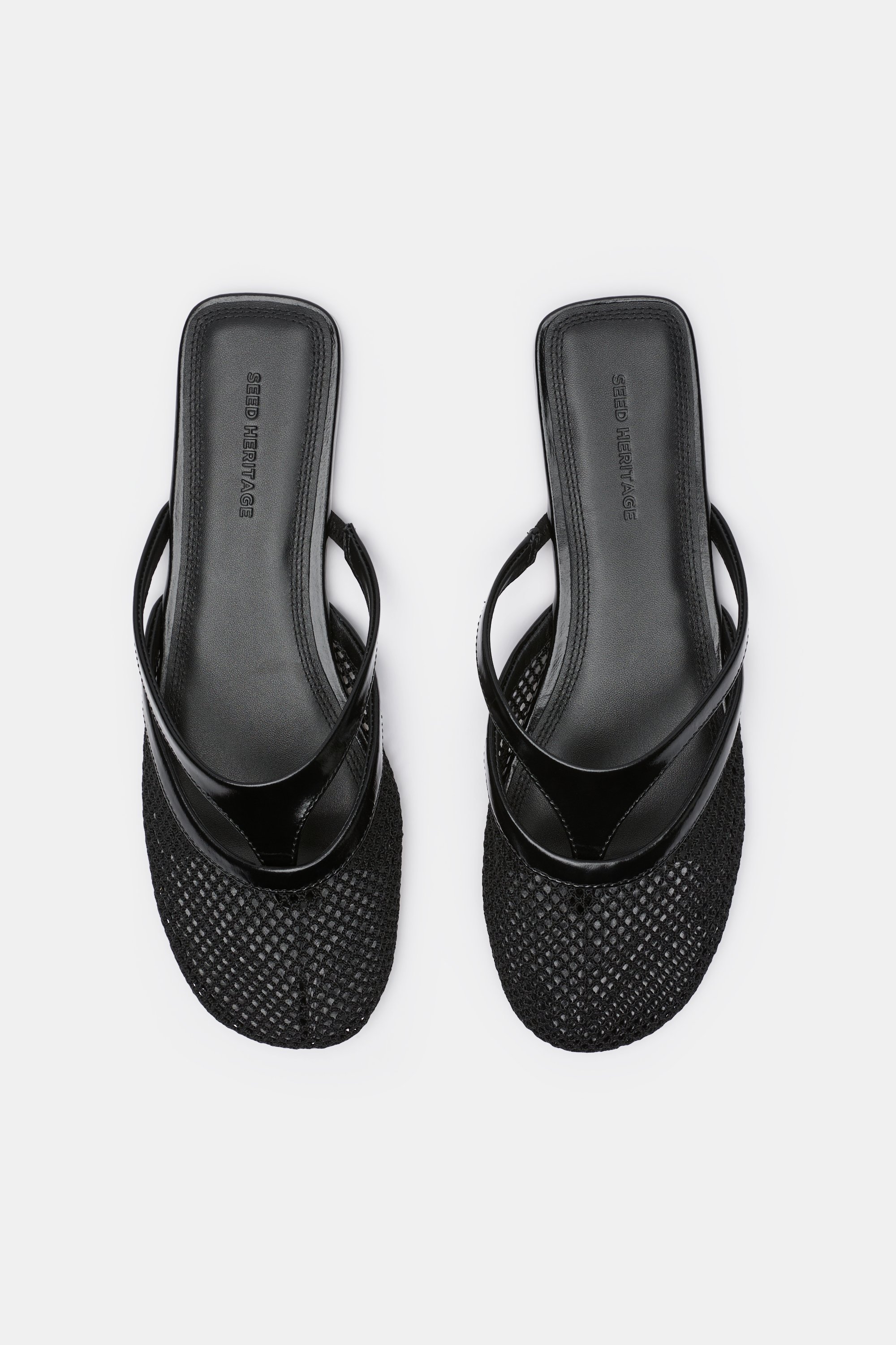 These modern slides add a contemporary feel to your summer wardrobe. They're a thong style with a round-toed mesh upper for added effect.