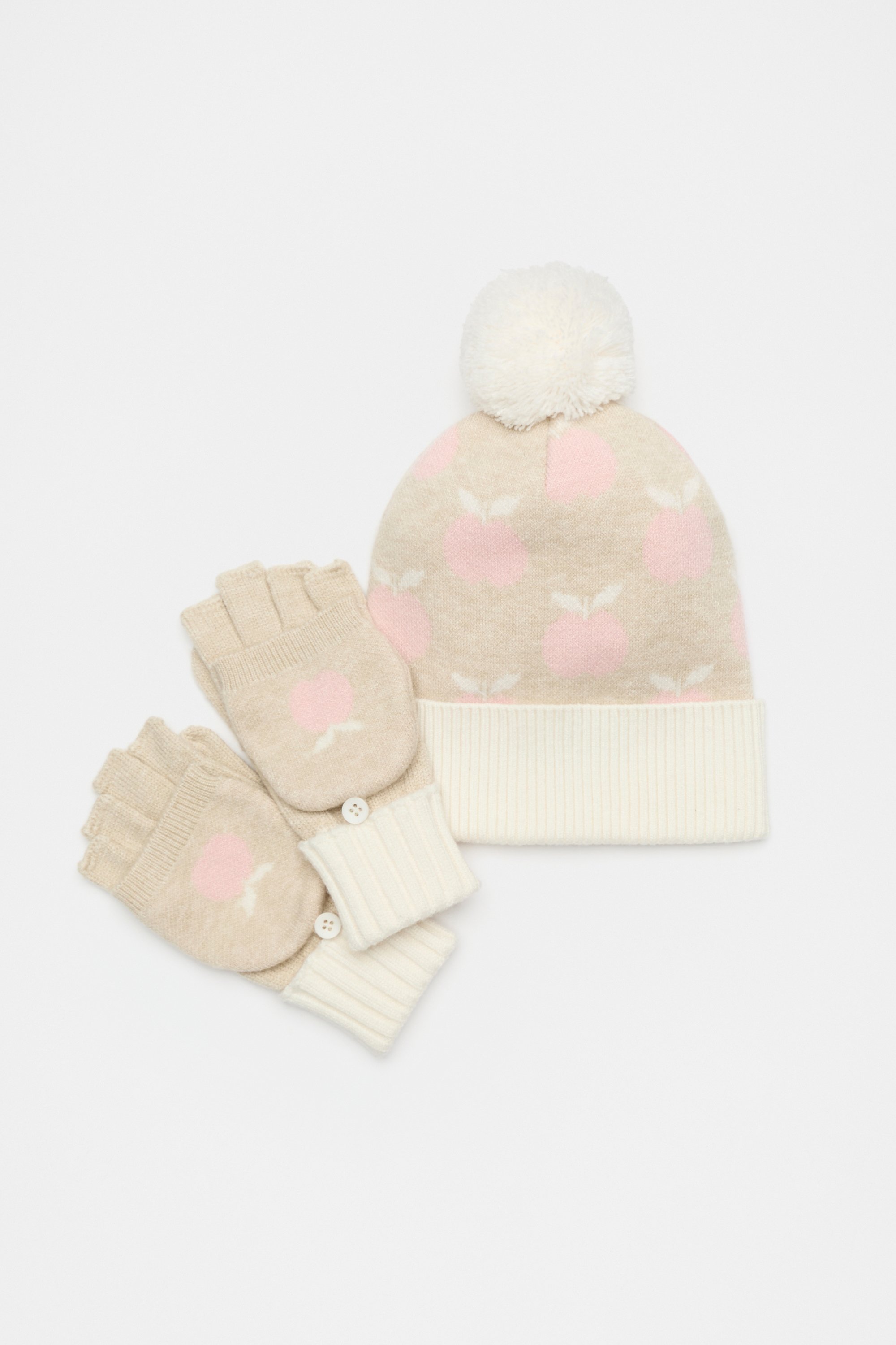 Cosy and sweet, this beanie is perfect for the cooler weather. It features an all-over apple design and a fluffy pom pom. For an adorable matching set, pair with the apple poncho or mittens.