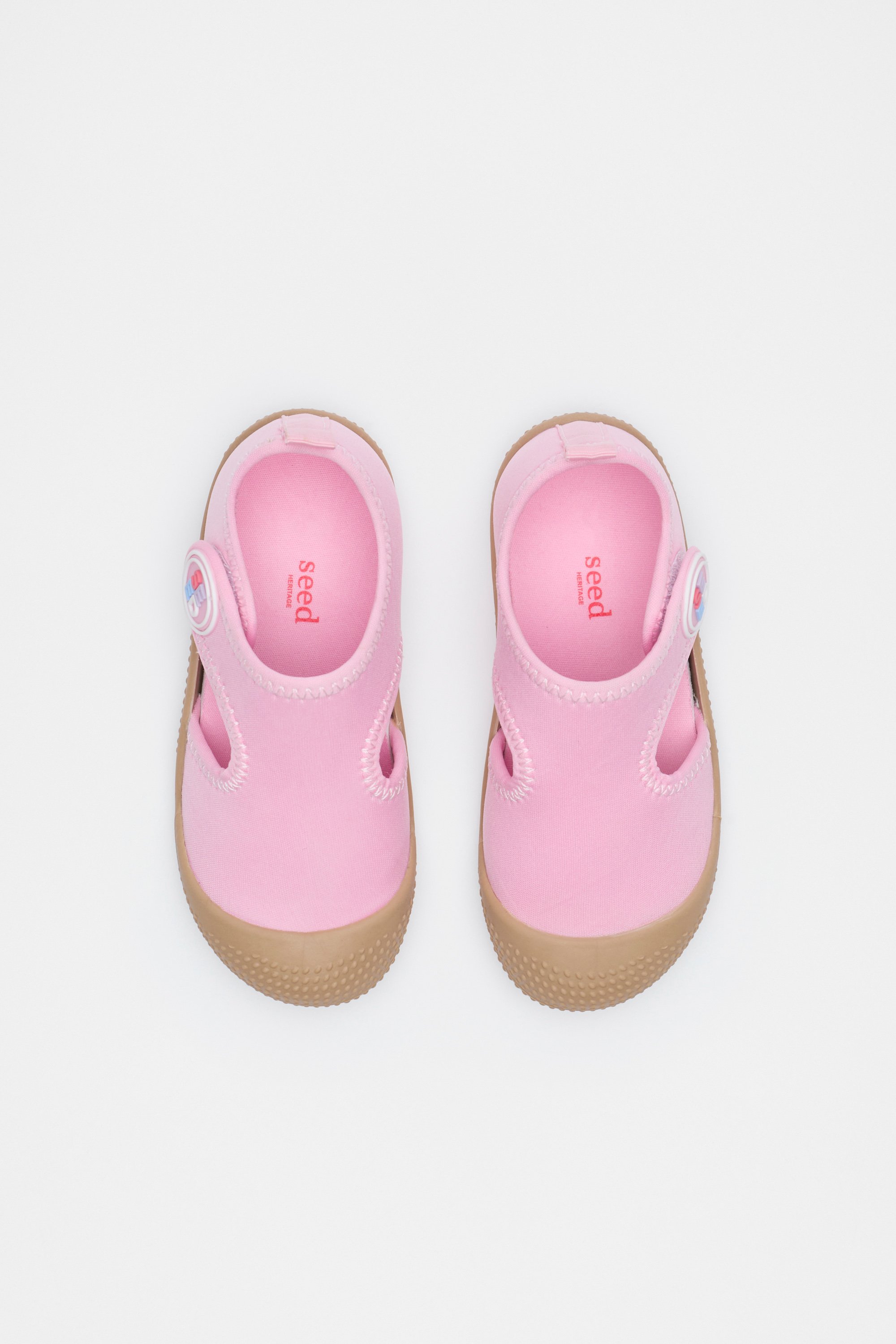 Ready for all their swim-day adventures, these shoes are designed for water play and exploring with their slip-resistant rubber sole and neoprene upper. They secure across the top with a hook-and-loop closure and feature a Seed Heritage logo detail and a pull tab for easy wear.