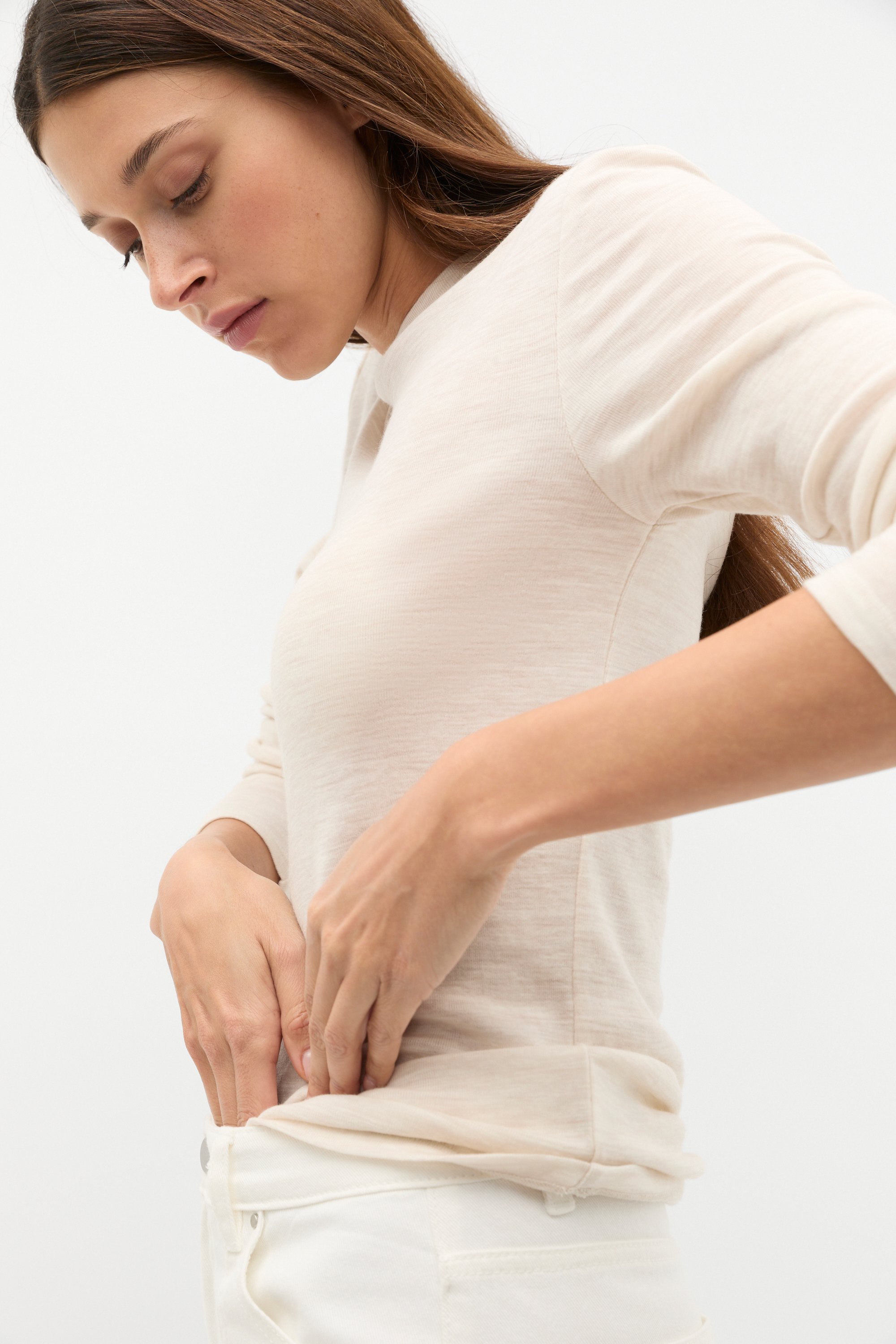 A lightweight luxury to elevate your every day, this top is a new staple for your wardrobe update. Crafted in Australian Merino wool, it features a crew neck, long sleeves and a neat stretch fit through the body.