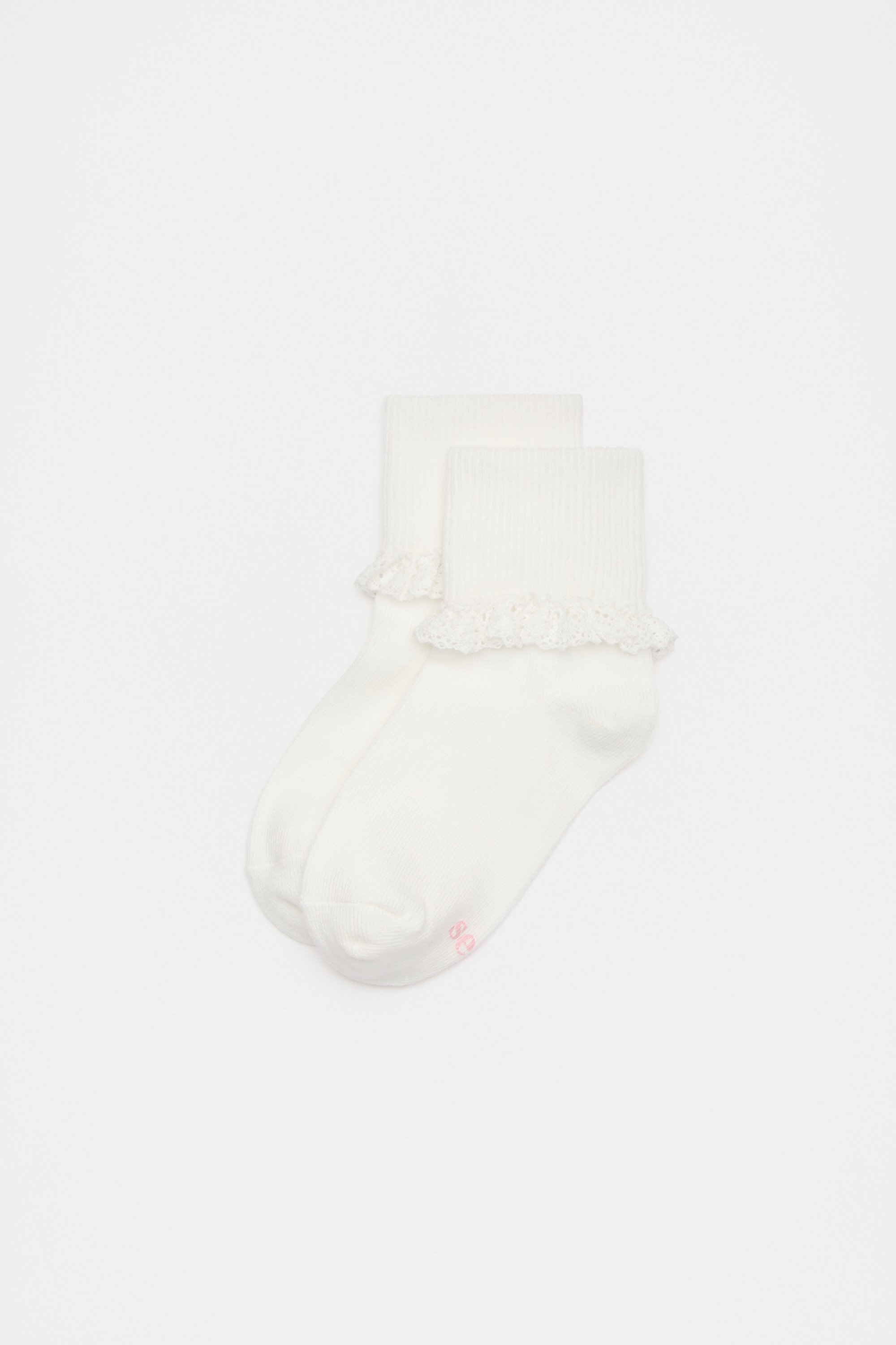 A sweet addition to any little wardrobe, these socks feature a ribbed cuff with a frill detail. Crafted from a comfortable stretch cotton blend.