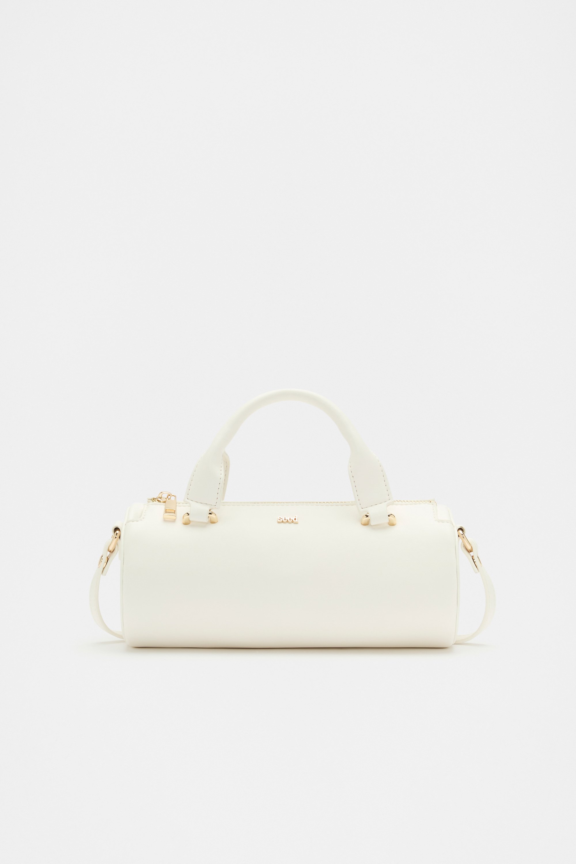 A modern take on a classic design, this barrel bag is perfect for everyday style. It features top carry handles, a top zip closure and a crossbody strap.