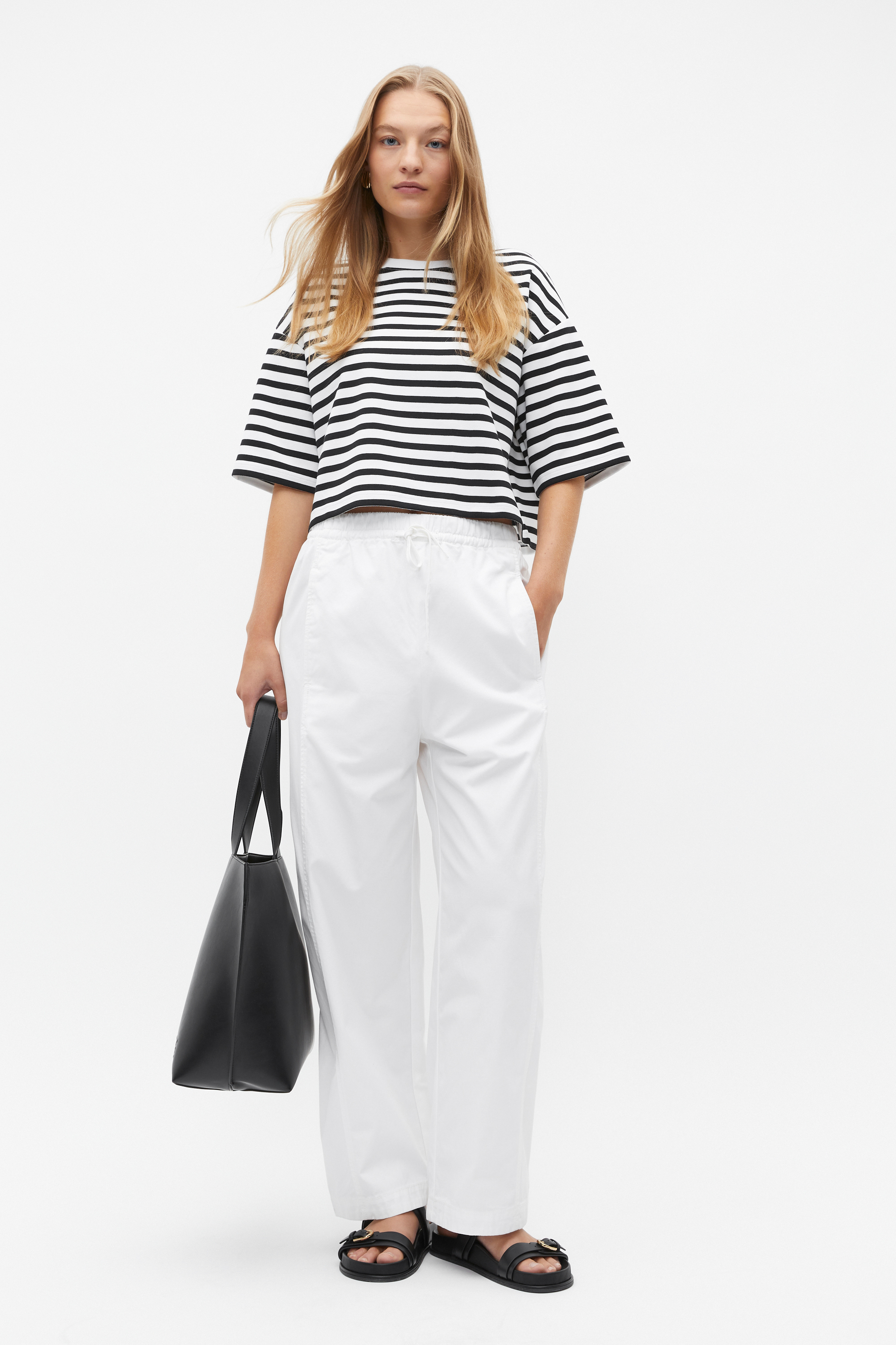 Crafted from premium cotton, these joggers are the perfect casual go to this summer. They feature an elasticated waist, wide leg and pockets. By choosing our cotton products you're supporting our investment in Better Cotton's mission. This product was sourced via a system of mass balance and therefore may not contain Better Cotton.