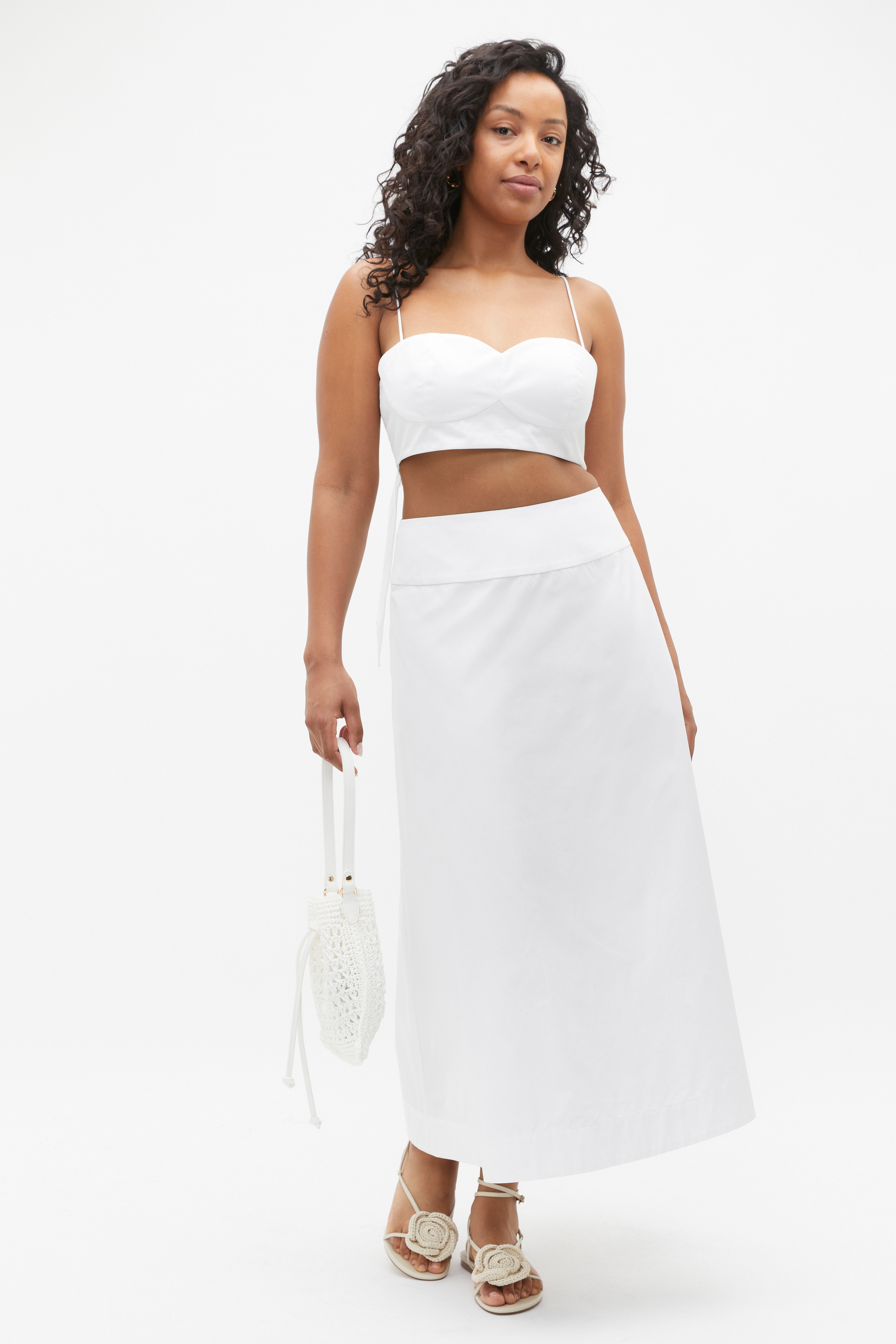 For a touch of elevated elegance, this skirt is the ideal statement for your summer styling. Crafted in premium cotton, it features a fixed waistline and a full circle skirt. Pair with the cotton bralette for a statement head-to-toe look. By choosing our cotton products you're supporting our investment in Better Cotton's mission. This product was sourced via a system of mass balance and therefore may not contain Better Cotton.