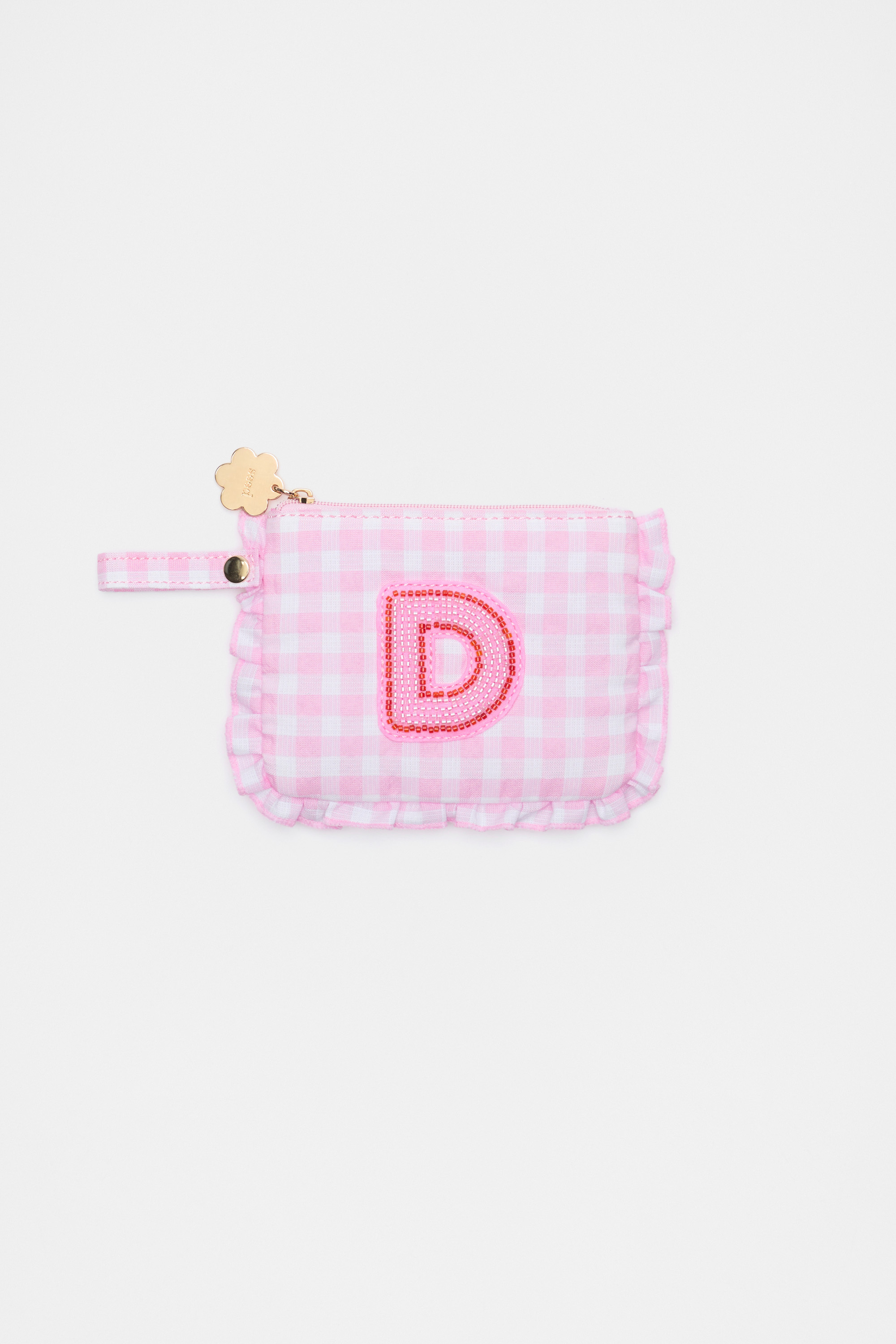 So sweet and stylish, this purse is one she'll treasure. It features a gingham design, a frill trim and secures with a zip. With a beaded initial, it makes for the perfect personalised gift.