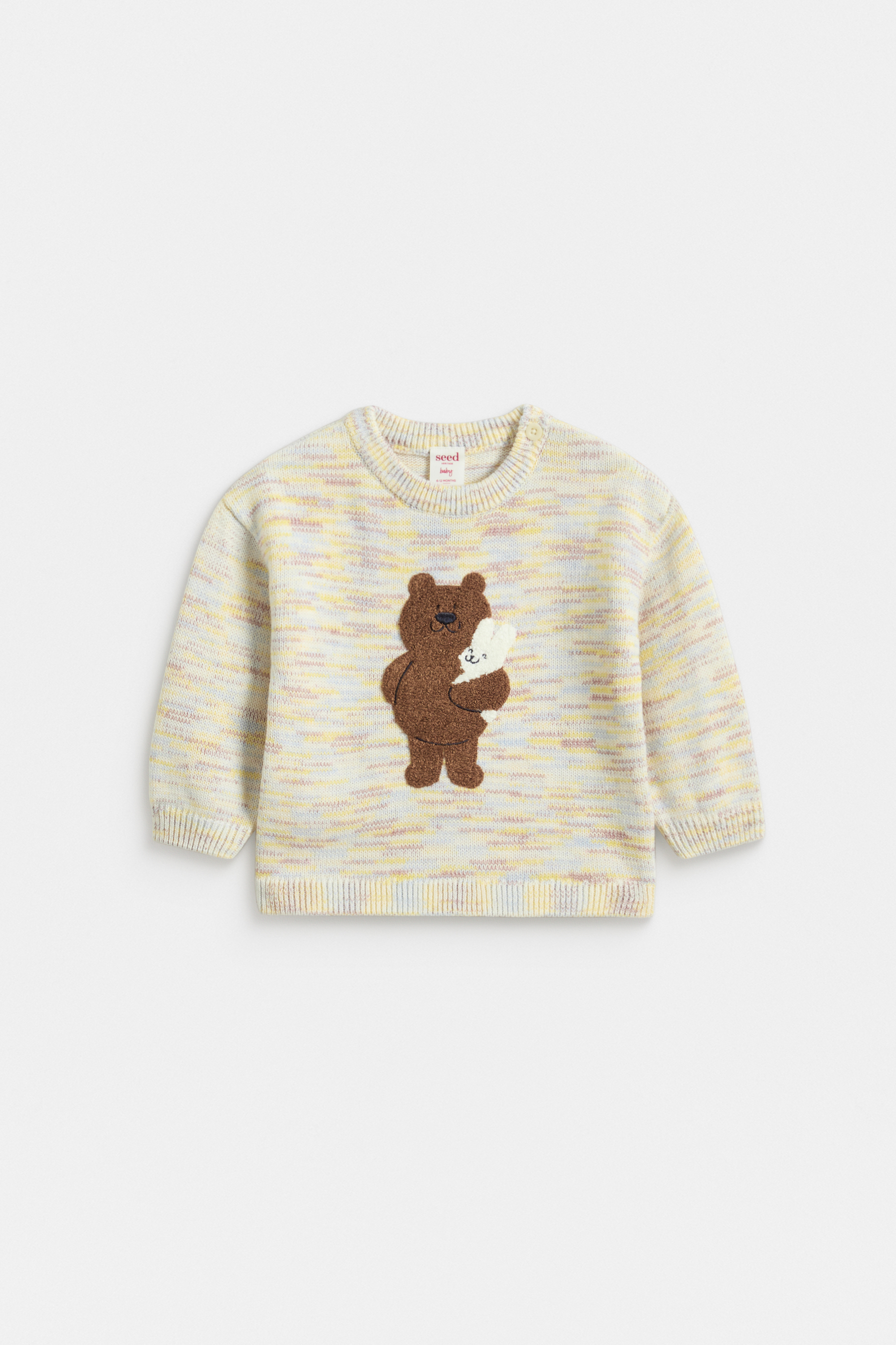 All soft and cuddly, this crew-neck features the cutest chenille patch of a bear and his little bunny. Crafted in premium cotton, it features a round neck, long sleeves, elasticated cuffs and an elasticated trim. It has buttons at the shoulder for ease and wearability.
