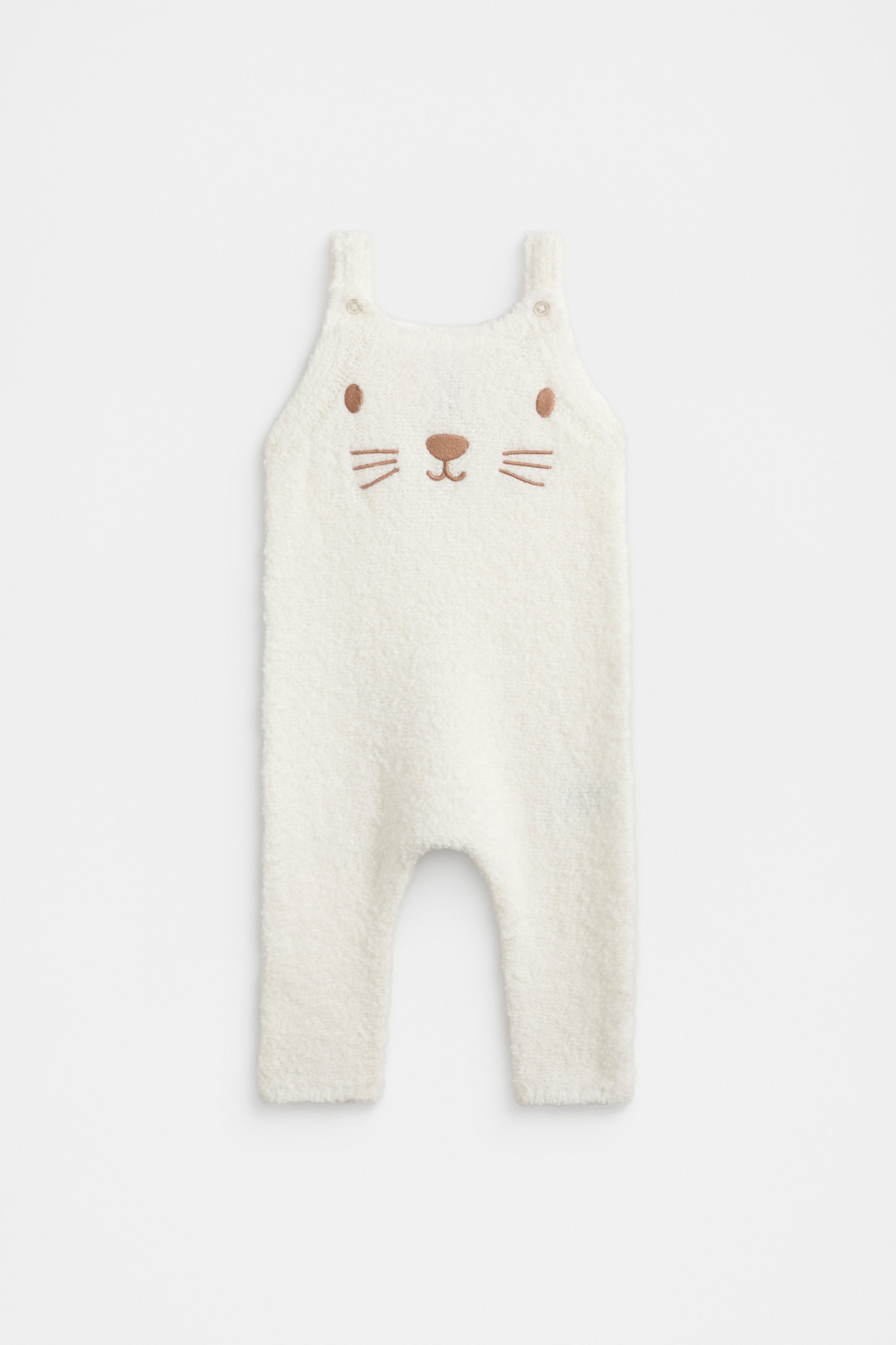 Your little bunny will be cuddlier than ever in these sweet and cosy bunny overalls. Finished in an ultra-soft boucle, they have button straps, an embroidered bunny face and a relaxed fit.