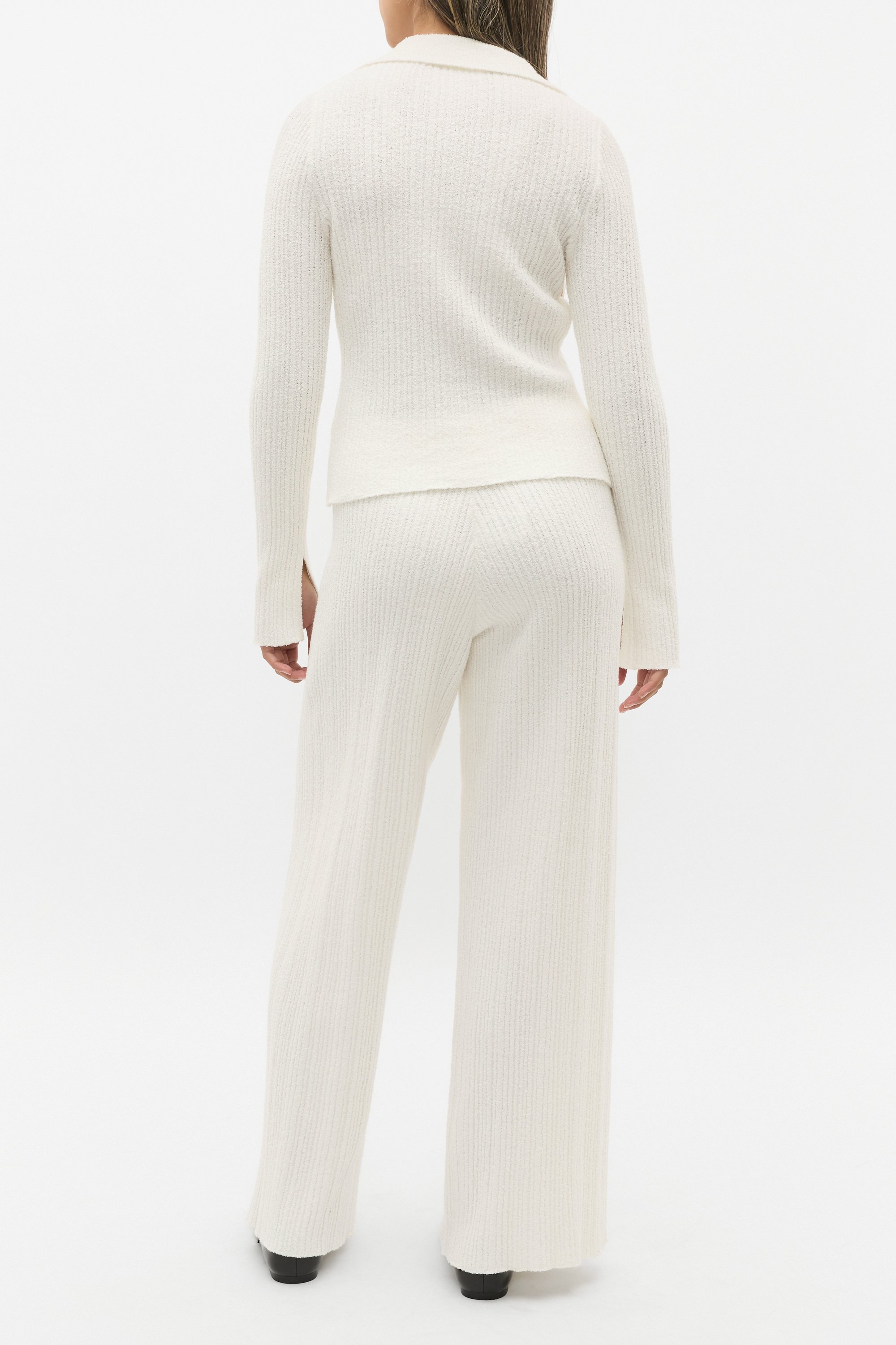 Chic and understated, this knit top is set to become a new wardrobe favourite with endless styling options. Crafted in a cotton blend, it features a collar, a button-through front and a textured boucle finish. Pair with the boucle knit pants for a tonal head-to-toe set.
