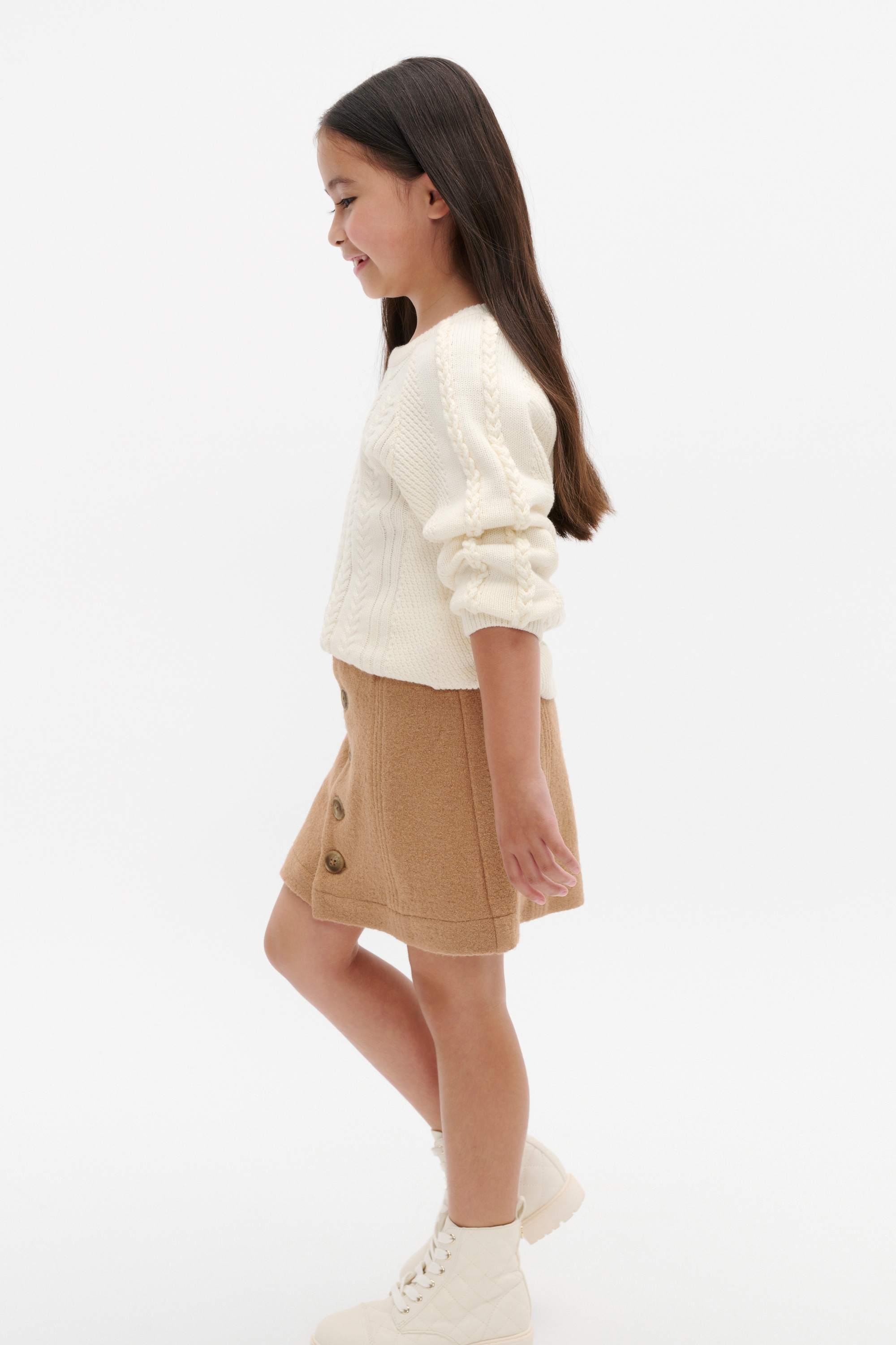 Cute and chic, this skirt is a versatile piece for her transeasonal wardrobe. Finished in a soft, textured boucle, it features a fixed waistband, belt loops and a button-through front. It's fully lined with a comfortable cotton lining.
