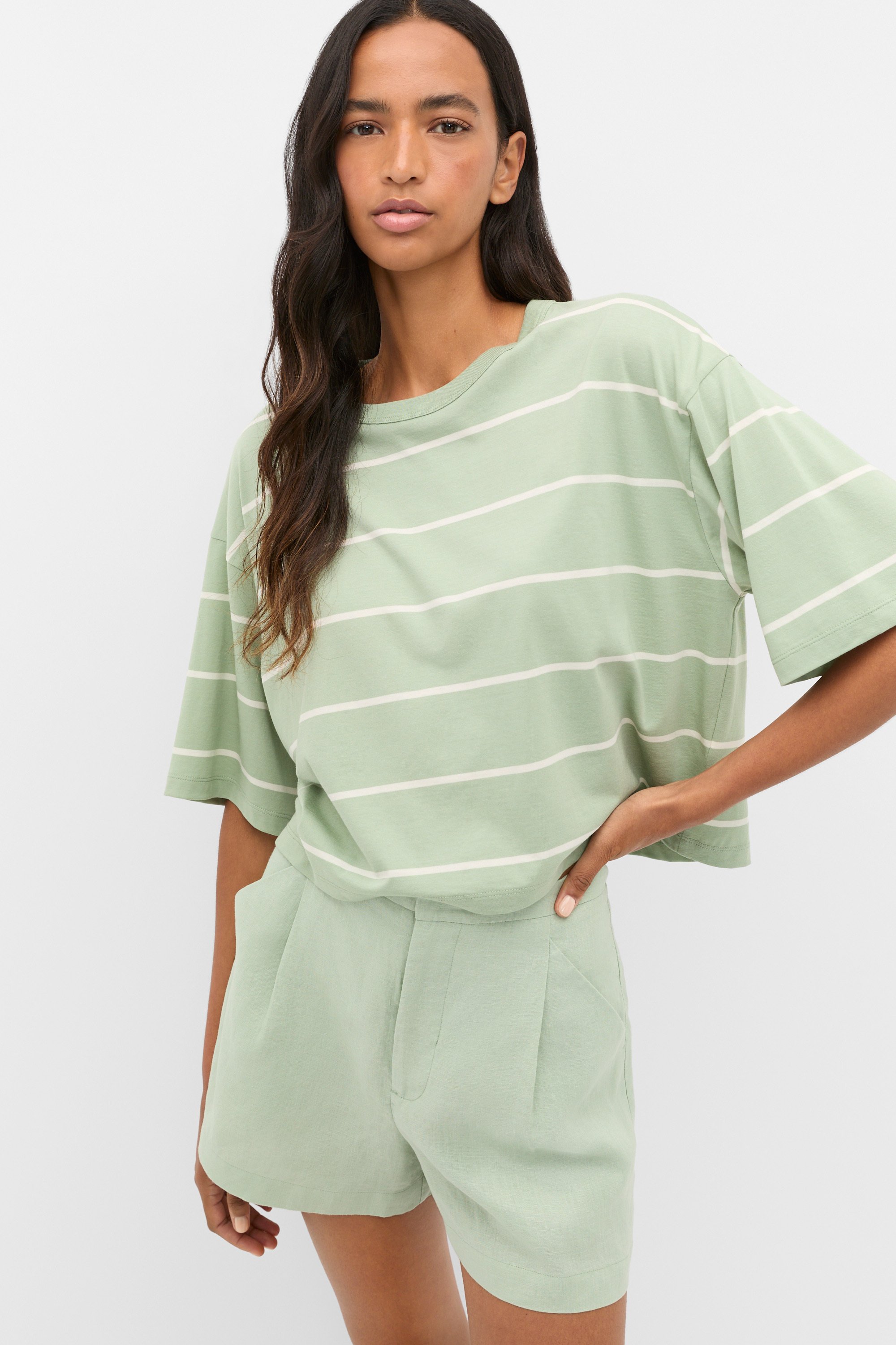 Boxy Draped Tee  Eucalyptus Stripe  hi-res Boxy Draped Tee  Eucalyptus Stripe  hi-res Boxy Draped Tee  Eucalyptus Stripe  hi-res Boxy Draped Tee  Eucalyptus Stripe  hi-res