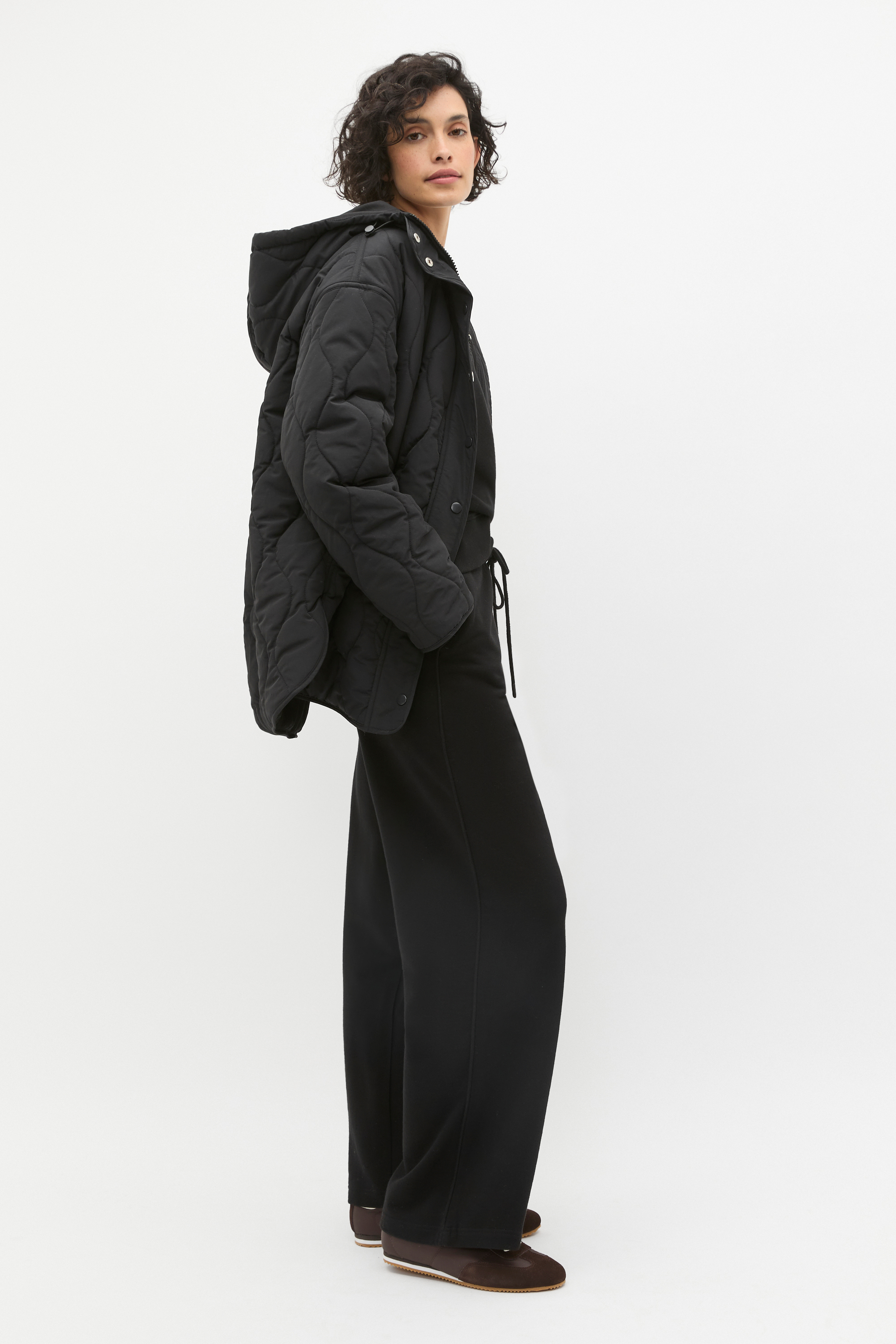 Ready for the cool change, this jacket adds a little luxury to your wet weather wardrobe. With a boxy fit, it features a hood, drop sleeves, a zip front with a button-up panel, angled pockets and a quilted finish.