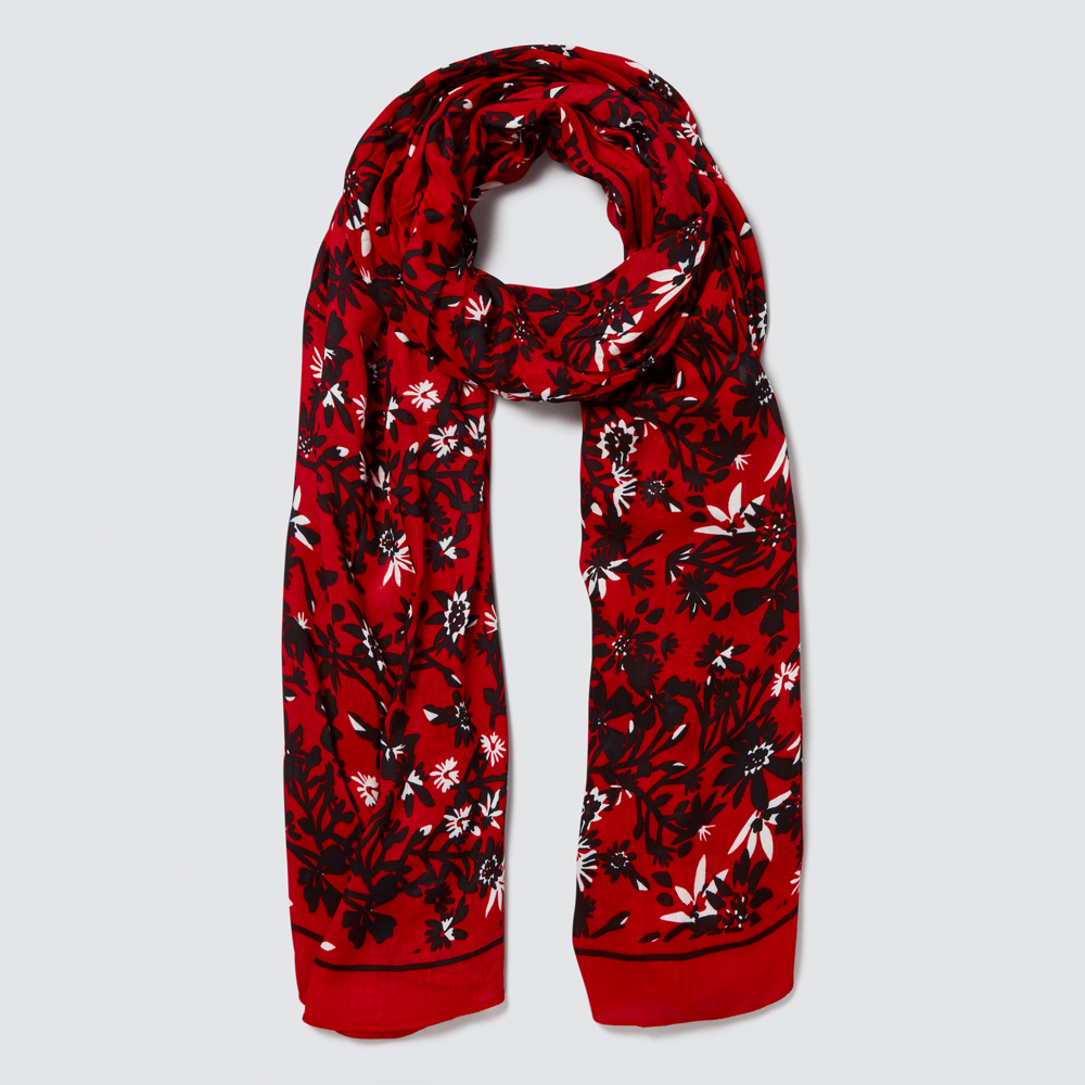 This scarf features an all over branch floral print. Made from polyester, this scarf is available in Red and in one size. Please wash as per care instructions found on garment.